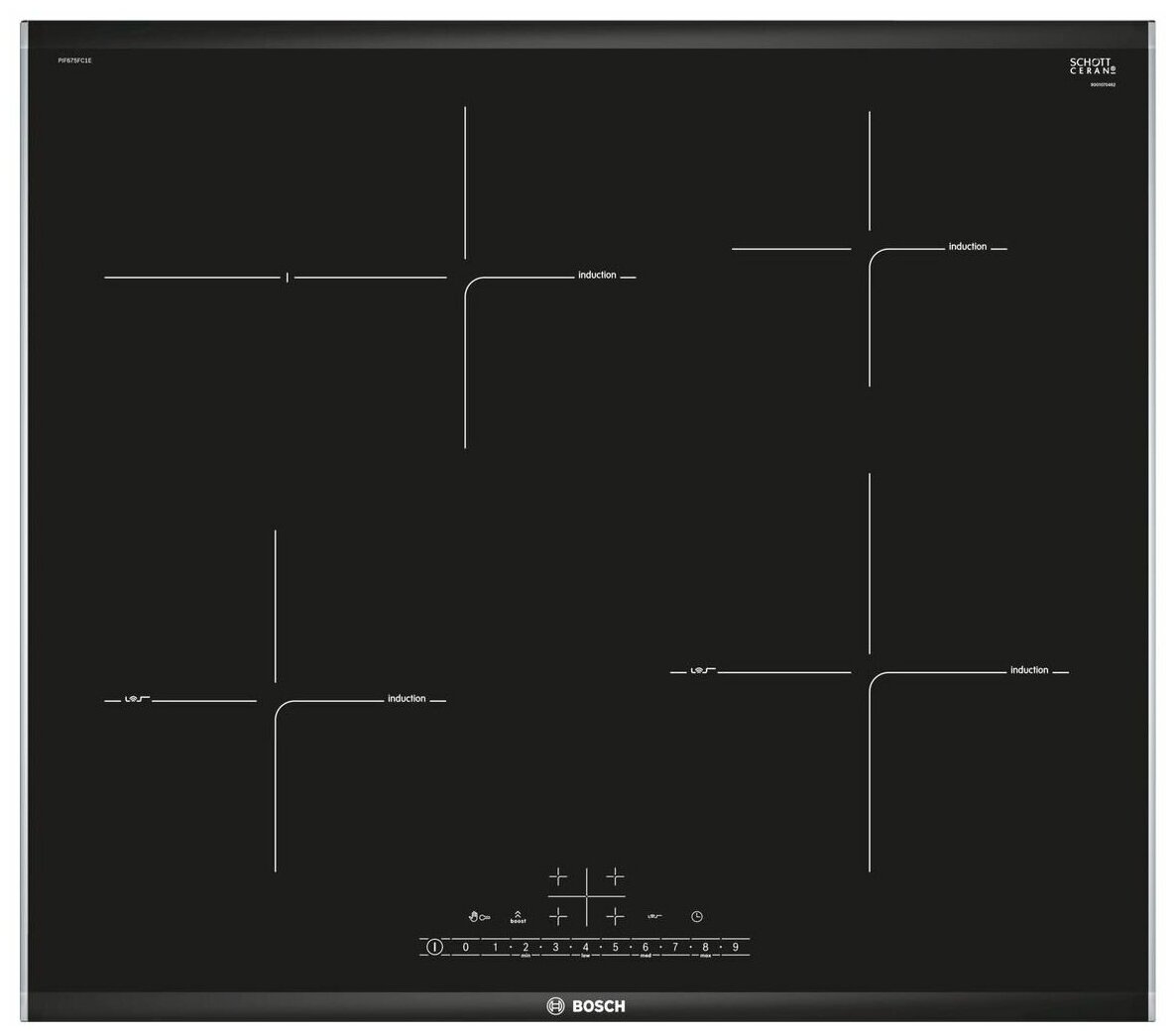конфорка диаметром 14,5 см, конфорка диаметром 21 см, конфорка диаметром 18 см, конфорка диаметром 18 см, с овальной зоной расширения 28 см