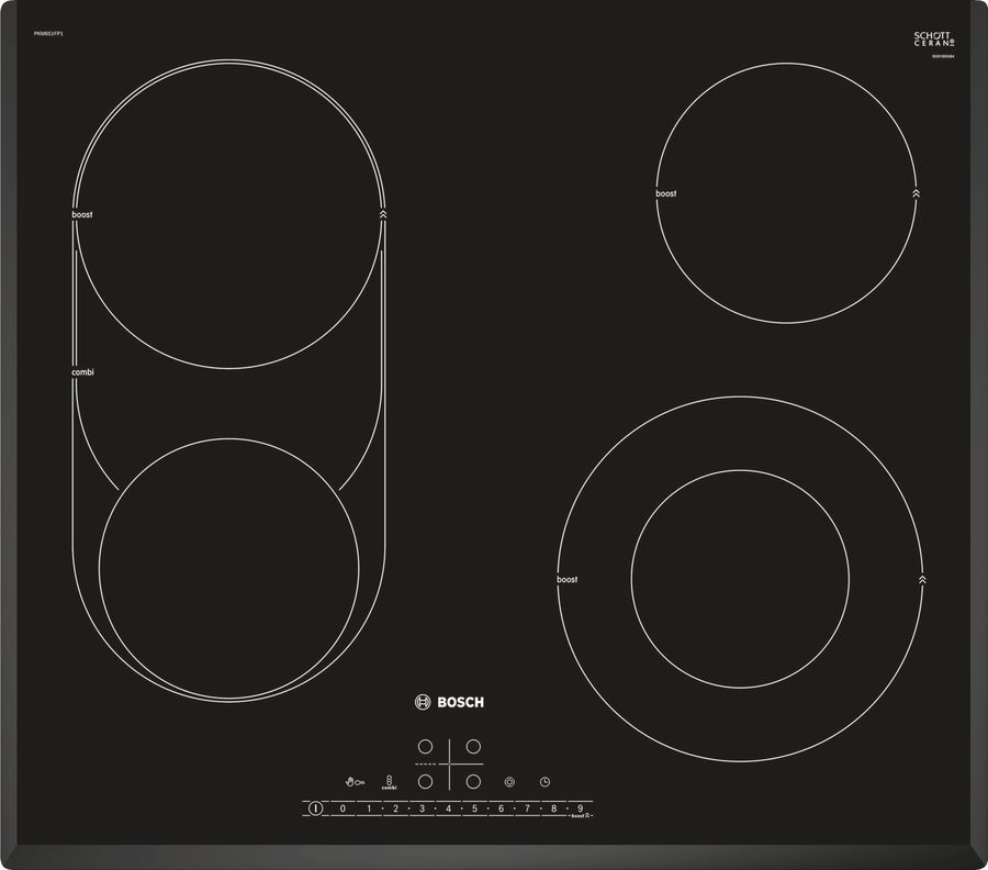 | Функции | PowerBoost: регулируемый уровень мощности для экономии 20% времени приготовления. Таймер с функцией автоматического отключения для каждой конфорки. Cleaning-пауза: кратковременная блокировка панели до 30 секунд. Функция reStart. |