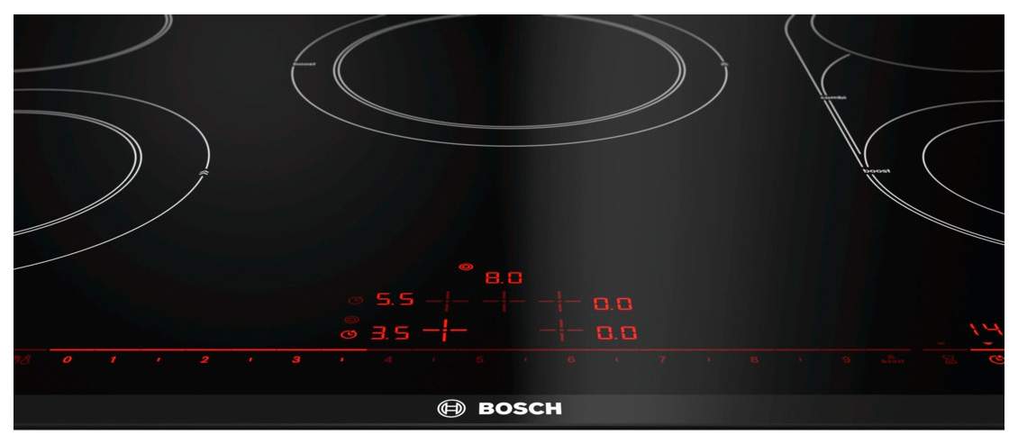 защитное отключение конфорок, индикатор остаточного тепла, кнопка блокировки панели