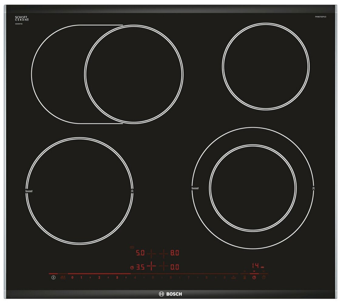 конфорка диаметром 14,5 см, конфорка диаметром 18 см, конфорка диаметром 14,5 см, с круглой зоной расширения диаметром 21 см, конфорка диаметром 17 см, с зоной расширения 26,5 см