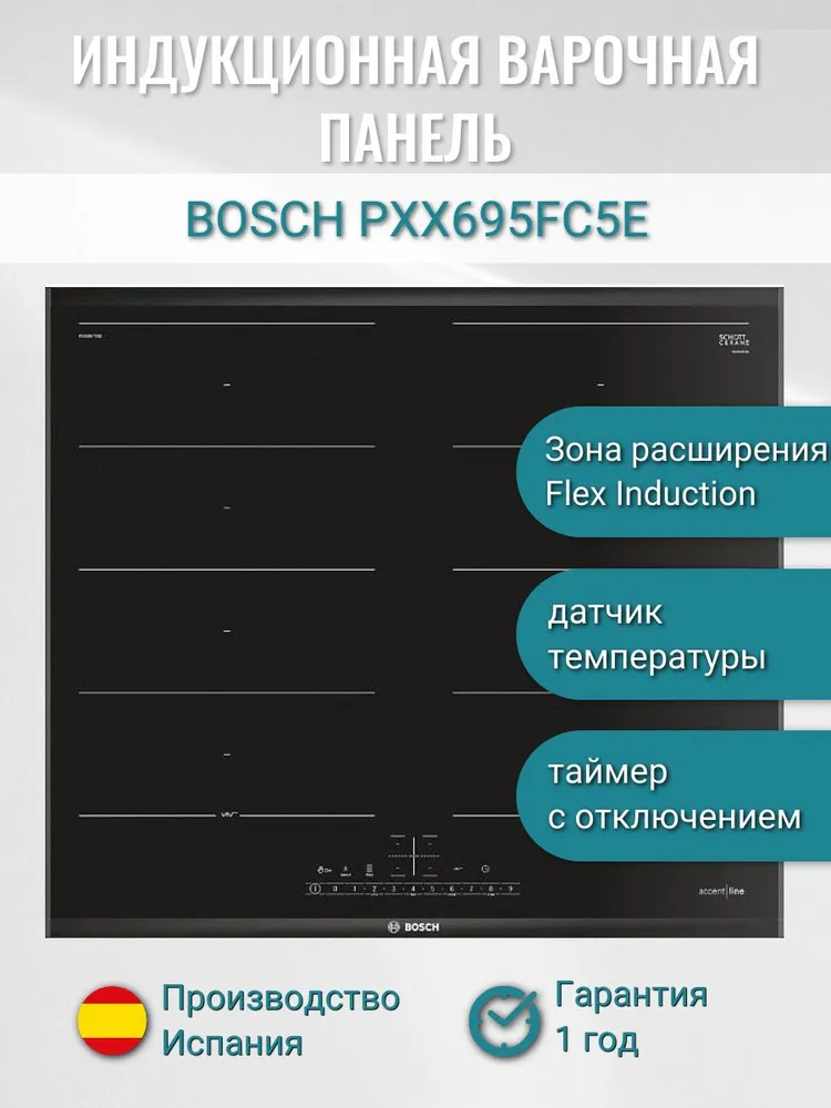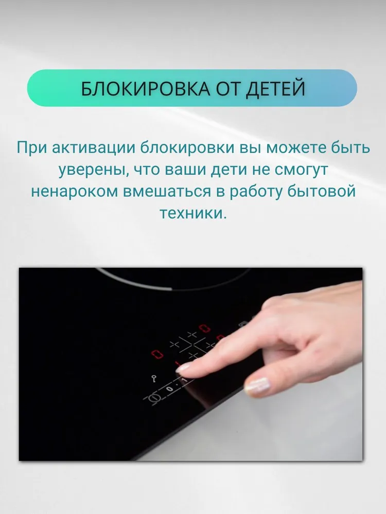 Безопасность - защитное отключение конфорок, индикатор остаточного тепла, кнопка блокировки панели