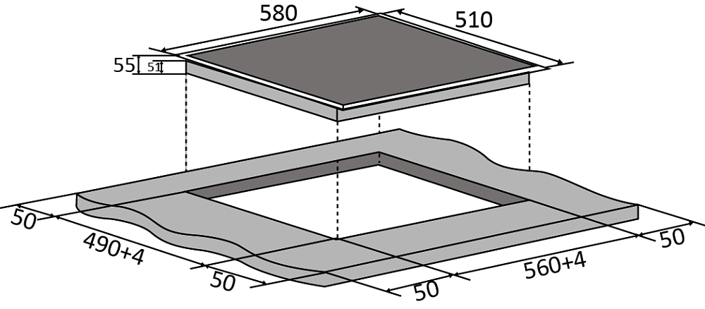 Размеры ниши для встраивания ВxШxГ (мм)560x490