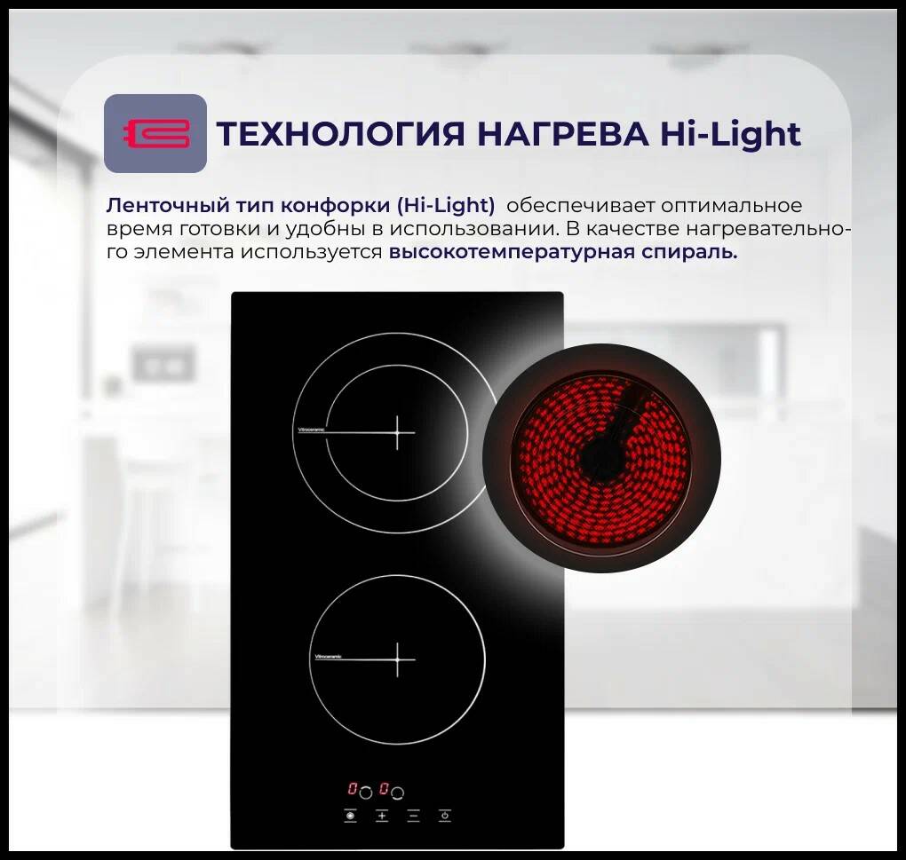 защитное отключение конфорок, индикатор остаточного тепла, кнопка блокировки панели
