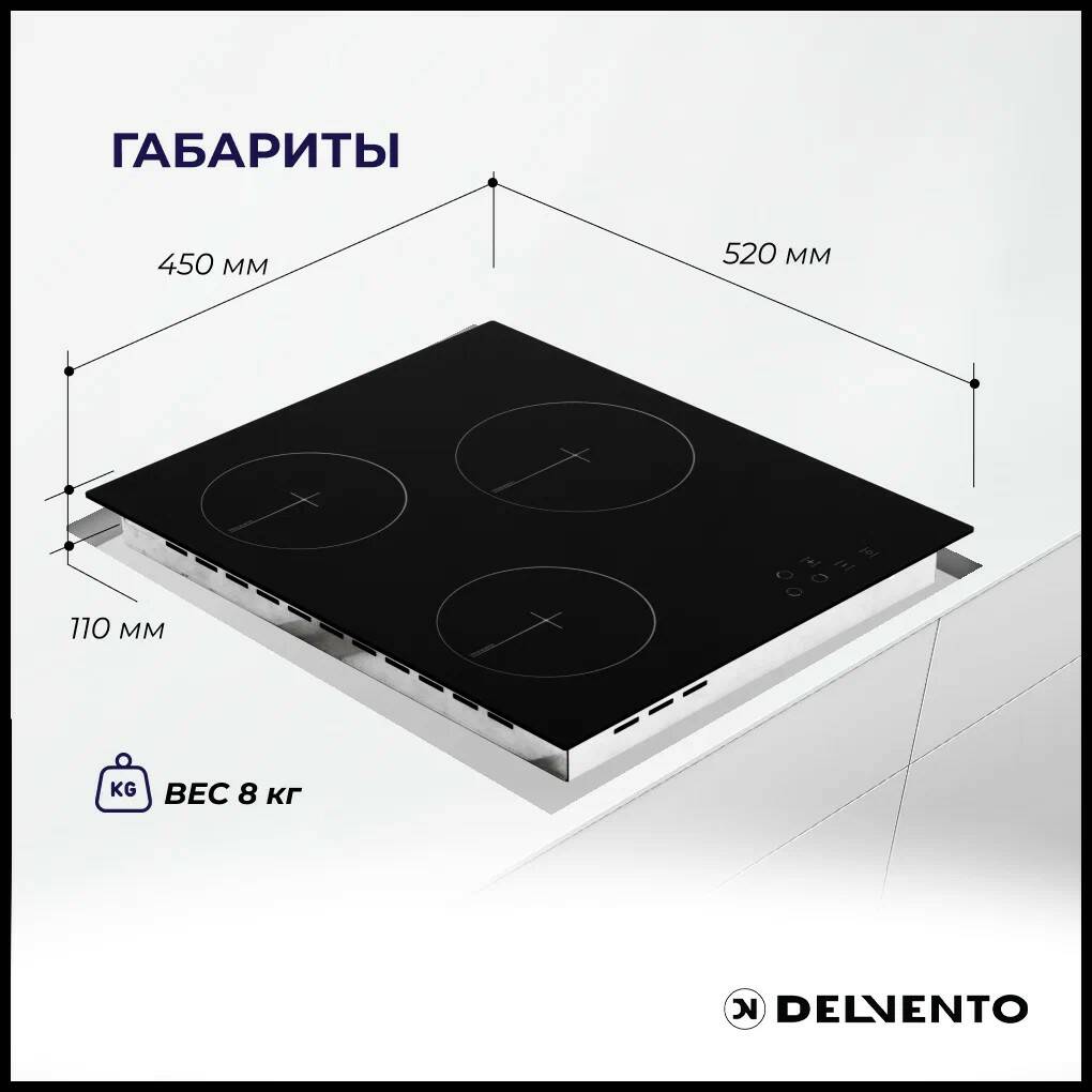 защитное отключение конфорок, индикатор остаточного тепла, кнопка блокировки панели