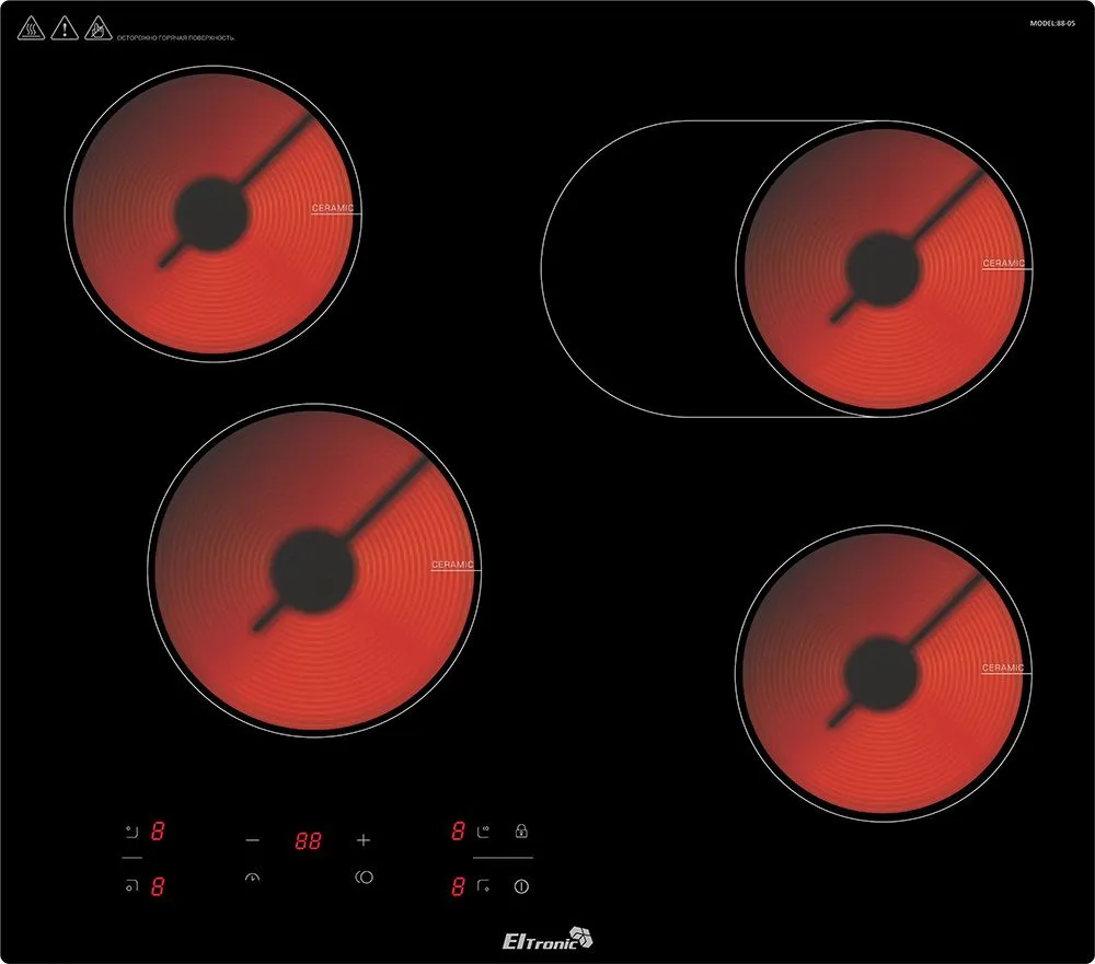 - 4 зоны нагрева + доп. секция овал