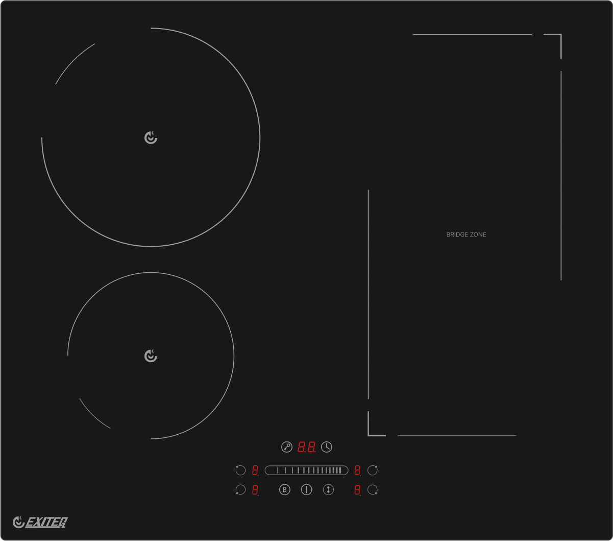 1 x 160 мм, 1.4 кВт (В режиме PowerBoost — 1.5 кВт); 1 x 210 мм, 2.4 кВт (В режиме PowerBoost — 2.6 кВт); 2 x 180 мм, 1.8 кВт (В режиме PowerBoost — 2 кВт)