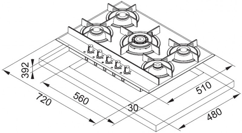 Конфорки5 газовых конфорок (1 с тройной короной)