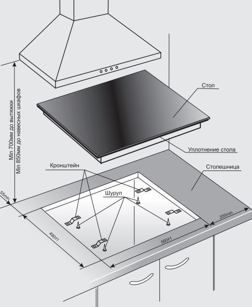 Размеры ниши для встраивания (ШхВxГ) 560 x 495 мм