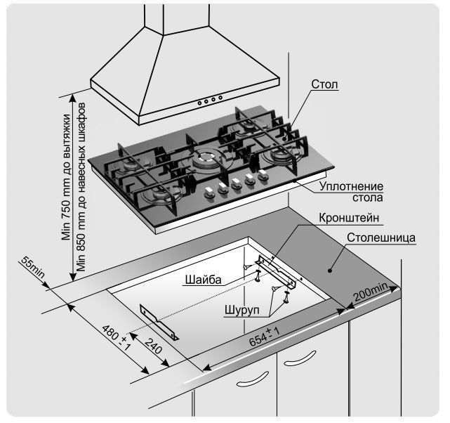 |  |  | Общие характеристики | Рамка | отсутствует | Решетки конфорок | чугунные | Габариты (ШхГ) | 80x53 см | Размеры для встраивания (ШхГ) | 654x480 мм | Страна производства | Беларусь |