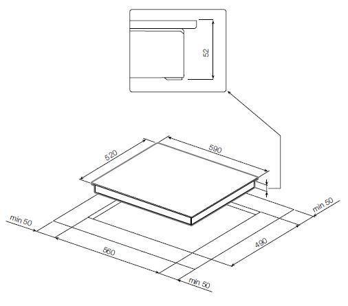 Размеры ниши для встраивания (Ш х Г), см: 59 х 52