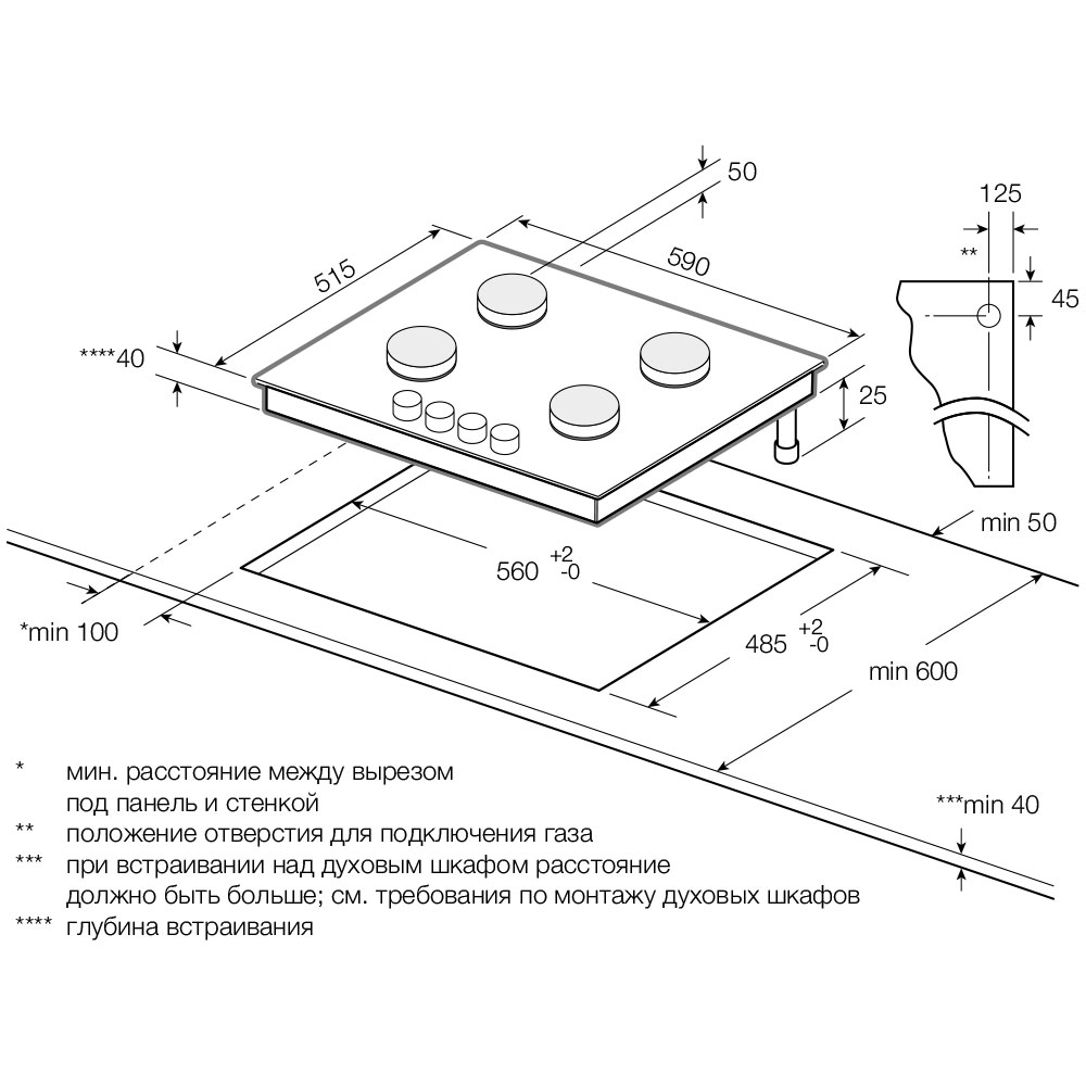 - 1 мощная конфорка 2,6 кВт