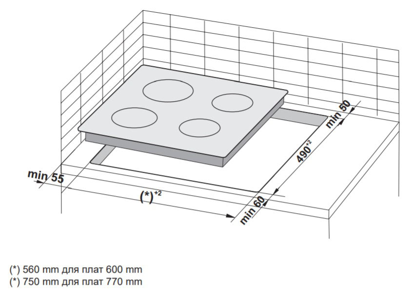 Размеры ниши для встраивания ( Ш х Г , мм) 560x490