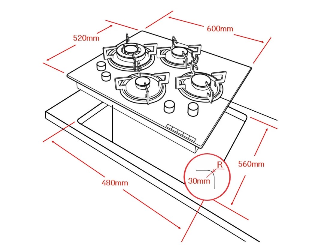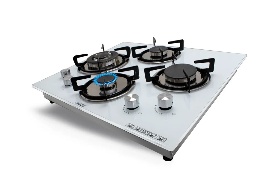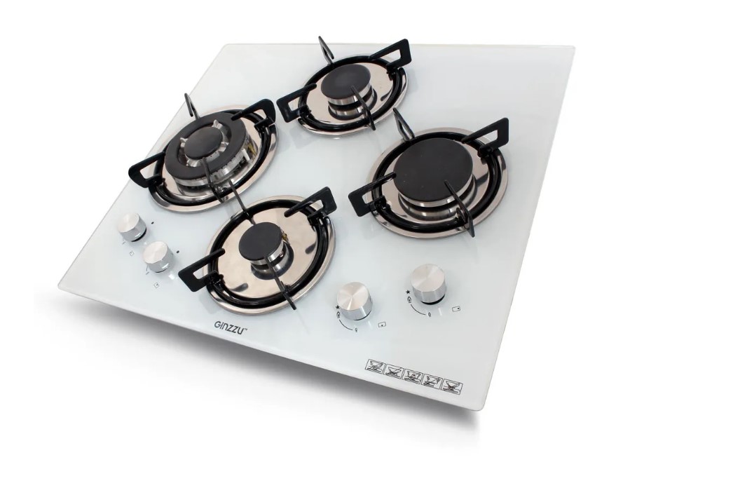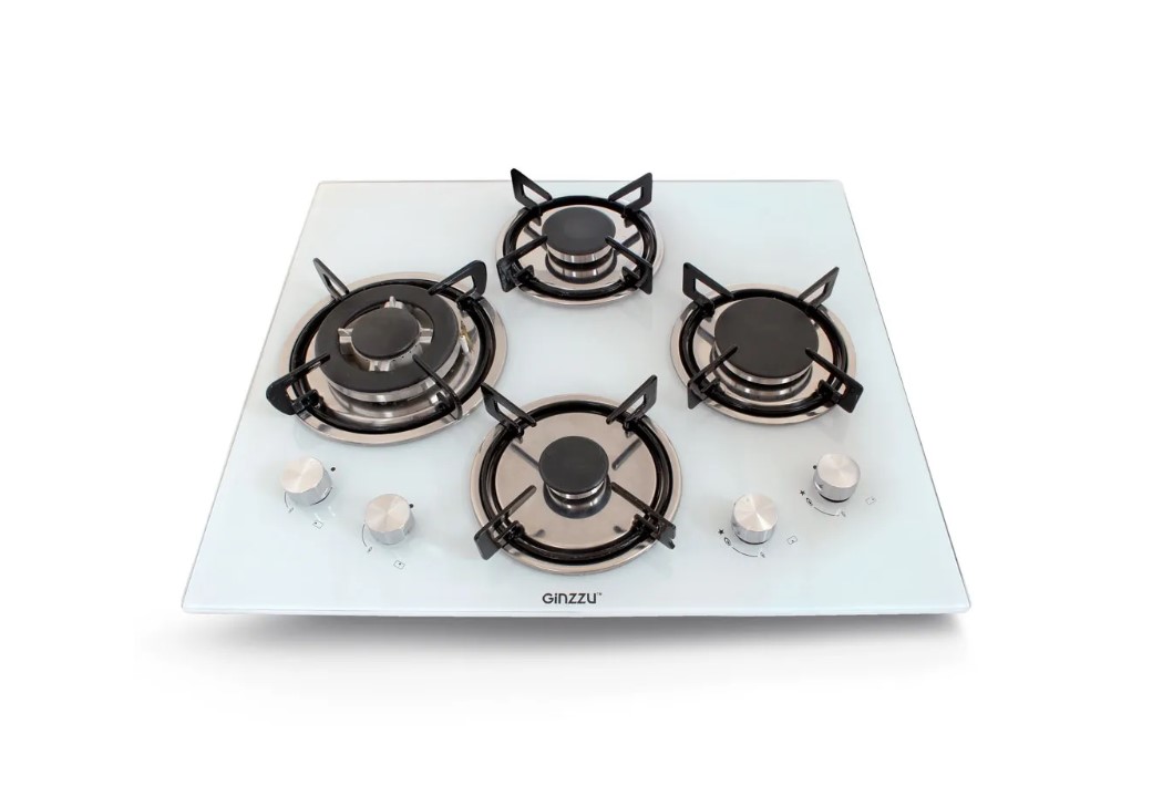 Встраиваемая газовая варочная панель Ginzzu-441. Газовый контроль. Электроподжиг. Поверхность из закаленного стекла. Горелка "тройная корона". Материал решеток (держателей) - сталь.