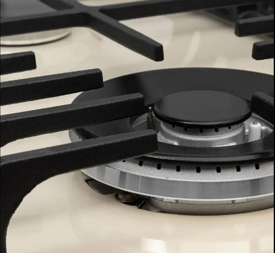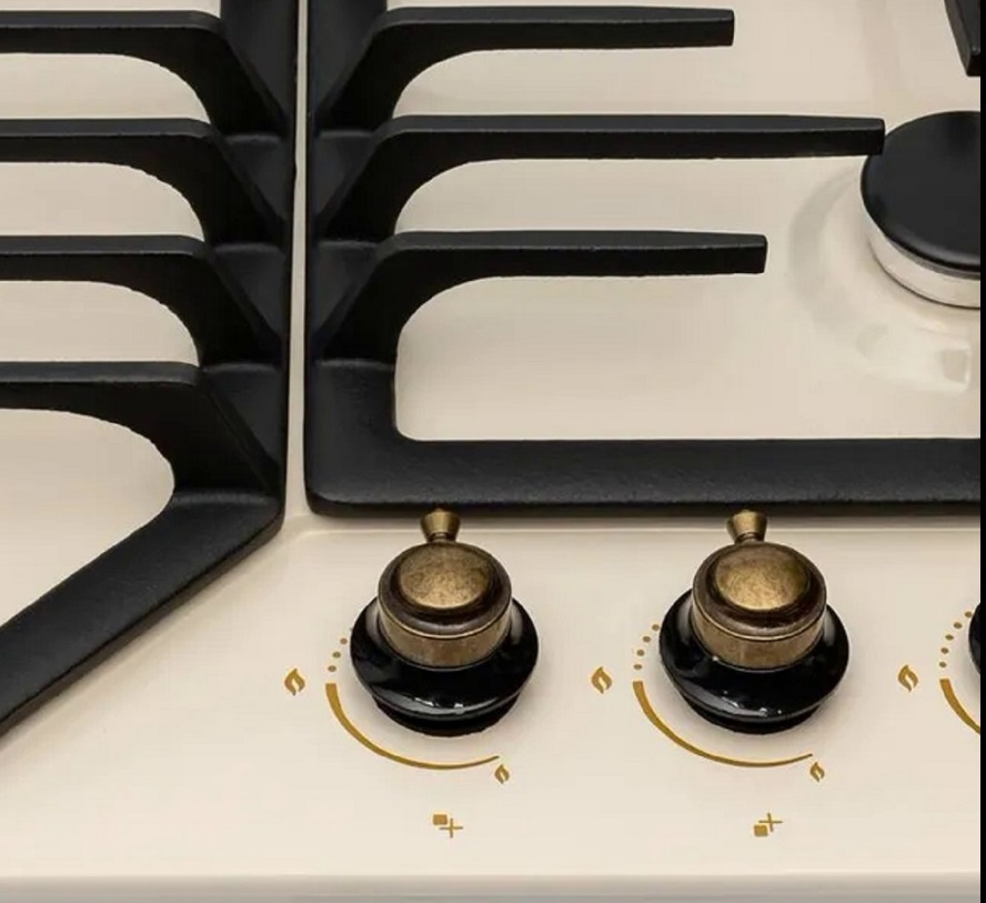 Ретро дизайн, эмалированная сталь в бежевом цвете, бронзовые ручки