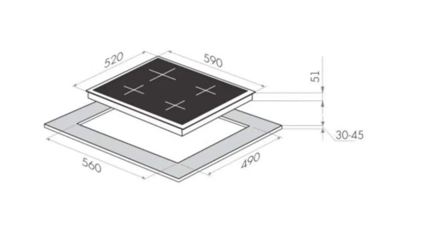 Размеры для встраивания: 560x490 мм (Ш*Г)