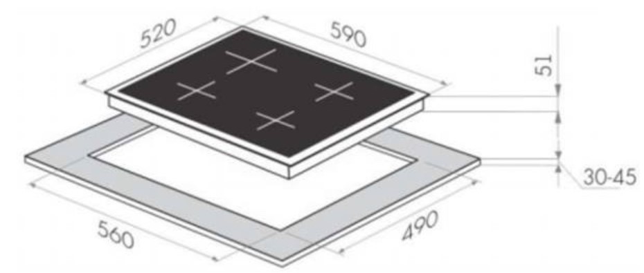 Размеры для встраивания (ШхГ) 560x490 мм