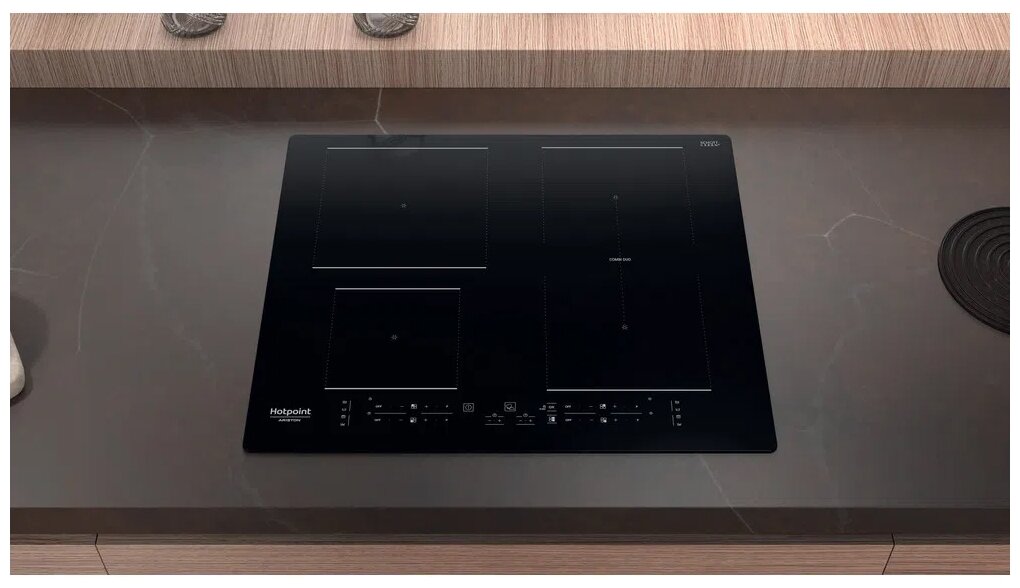 защитное отключение конфорок, кнопка блокировки панели, индикатор остаточного тепла