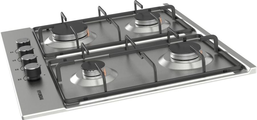 независимая; общая мощность конфорок 7200Вт; количество конфорок 4; поверхность нержавеющая сталь; решетка эмалированная сталь; автоматический электроподжиг; ширина 590мм; цвет нержавеющая сталь