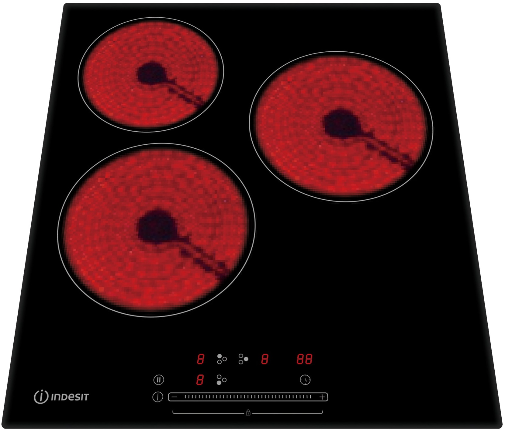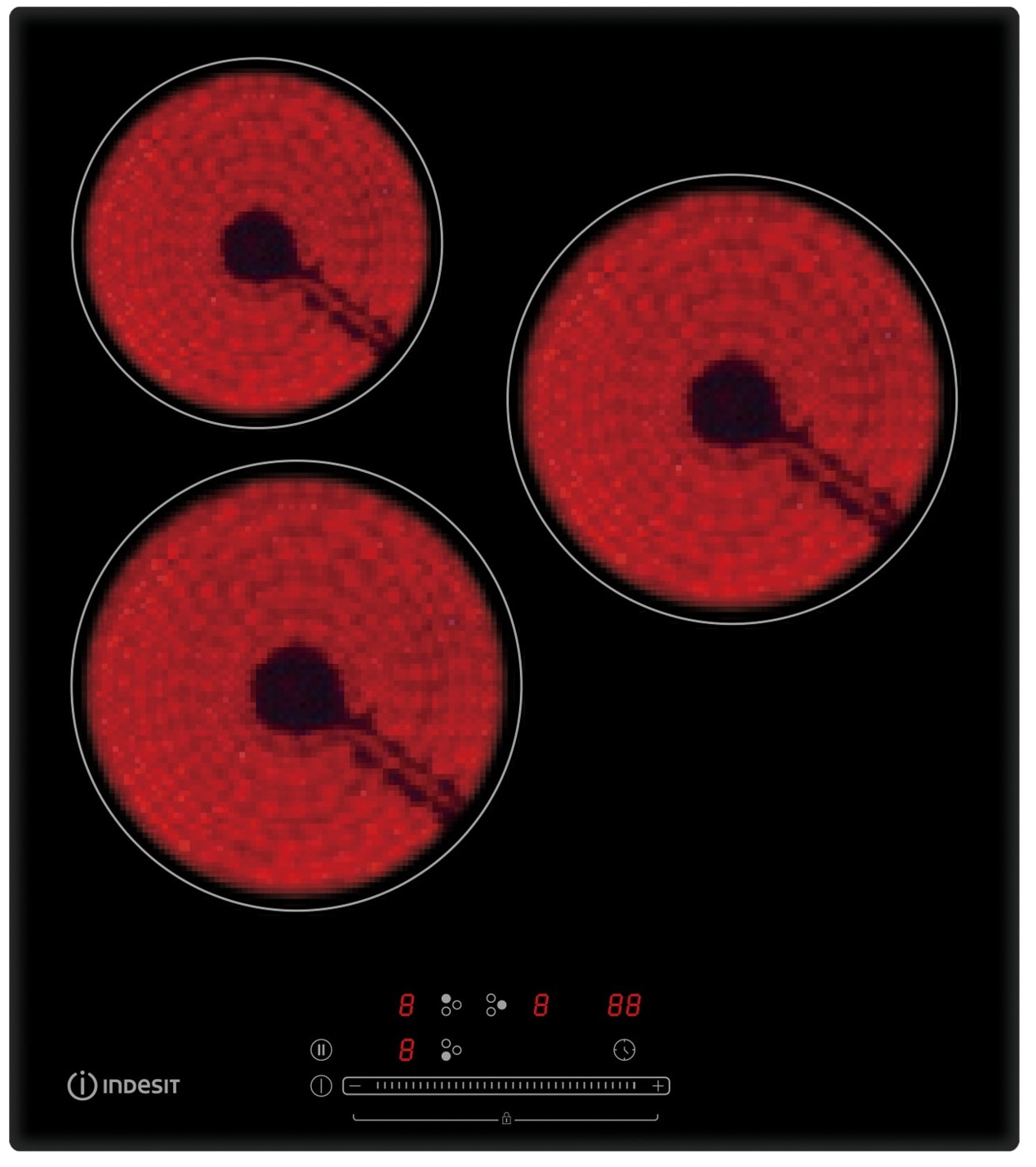 Мощность конфорок: 1.2 кВт (задняя левая), 1.8 кВт (передняя левая), 1.8 кВт (правая)