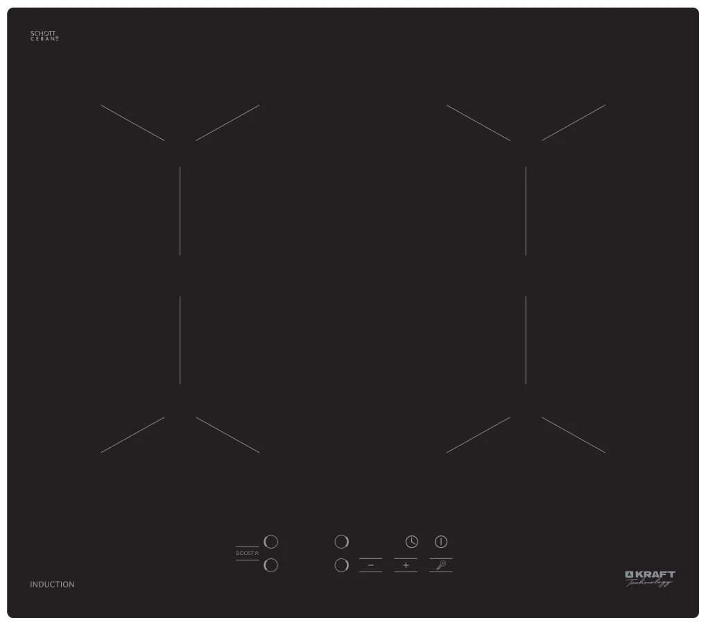защитное отключение конфорок, индикатор остаточного тепла, кнопка блокировки панели