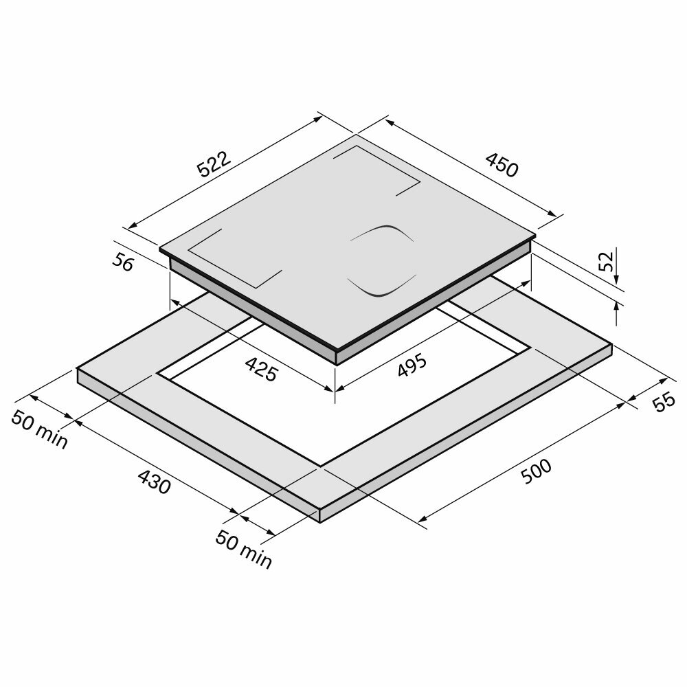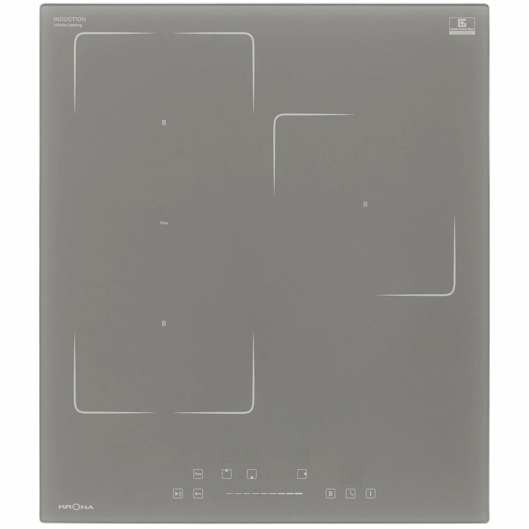 Диаметр и мощность конфорок, мм/кВт: Дальняя левая: 180 мм * 1,3/1,5 кВт; Ближняя левая: 180 мм * 1,9/2,2 кВт; Центральная правая: 210 мм * 2/3 кВт; Flex зона: 180х300 * 3/3,6 кВт