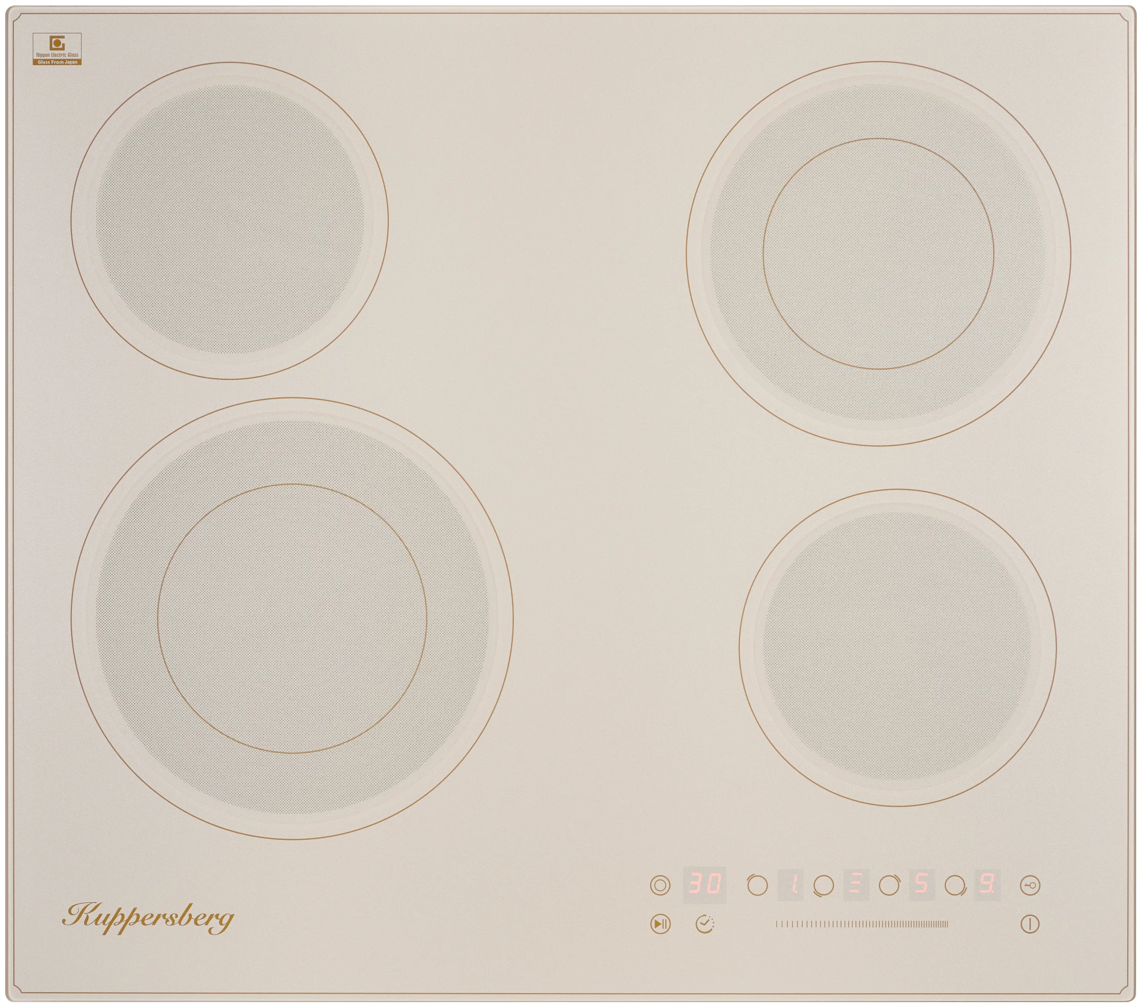 защитное отключение конфорок, индикатор остаточного тепла, кнопка блокировки панели