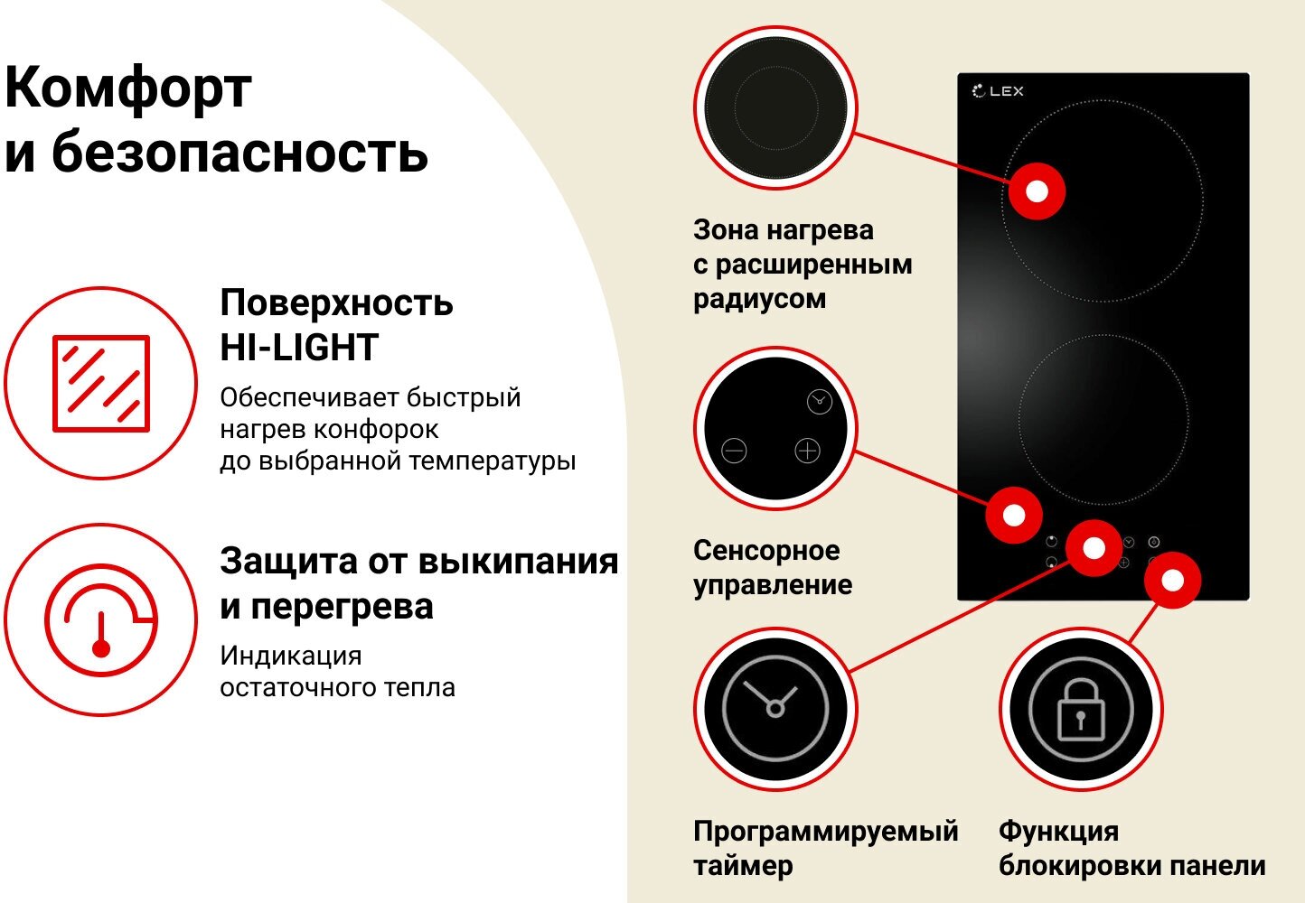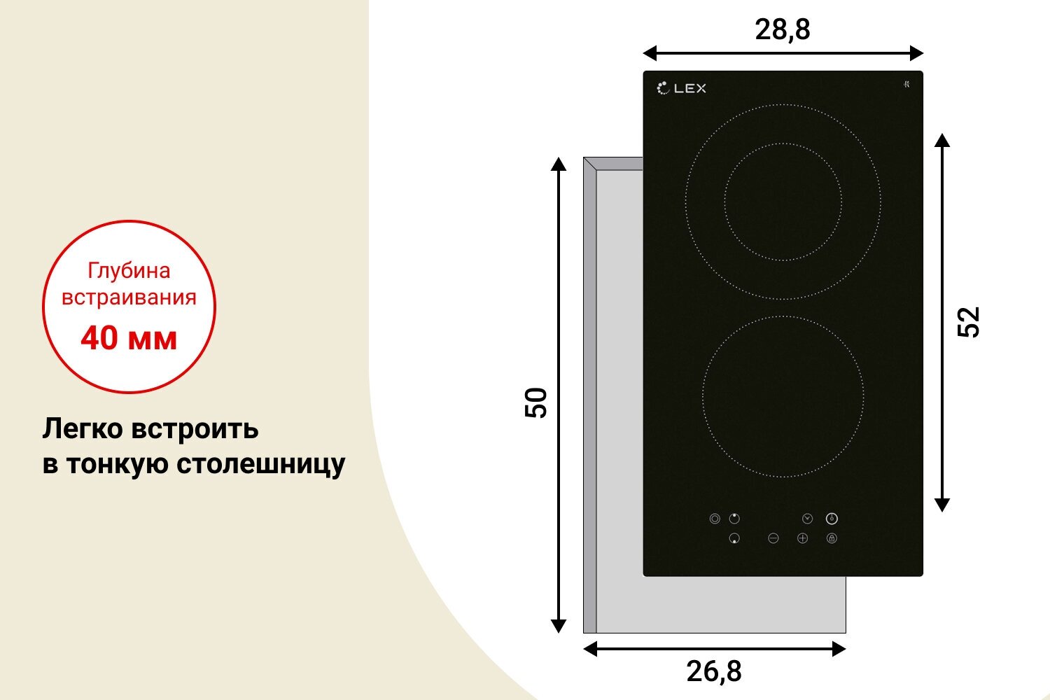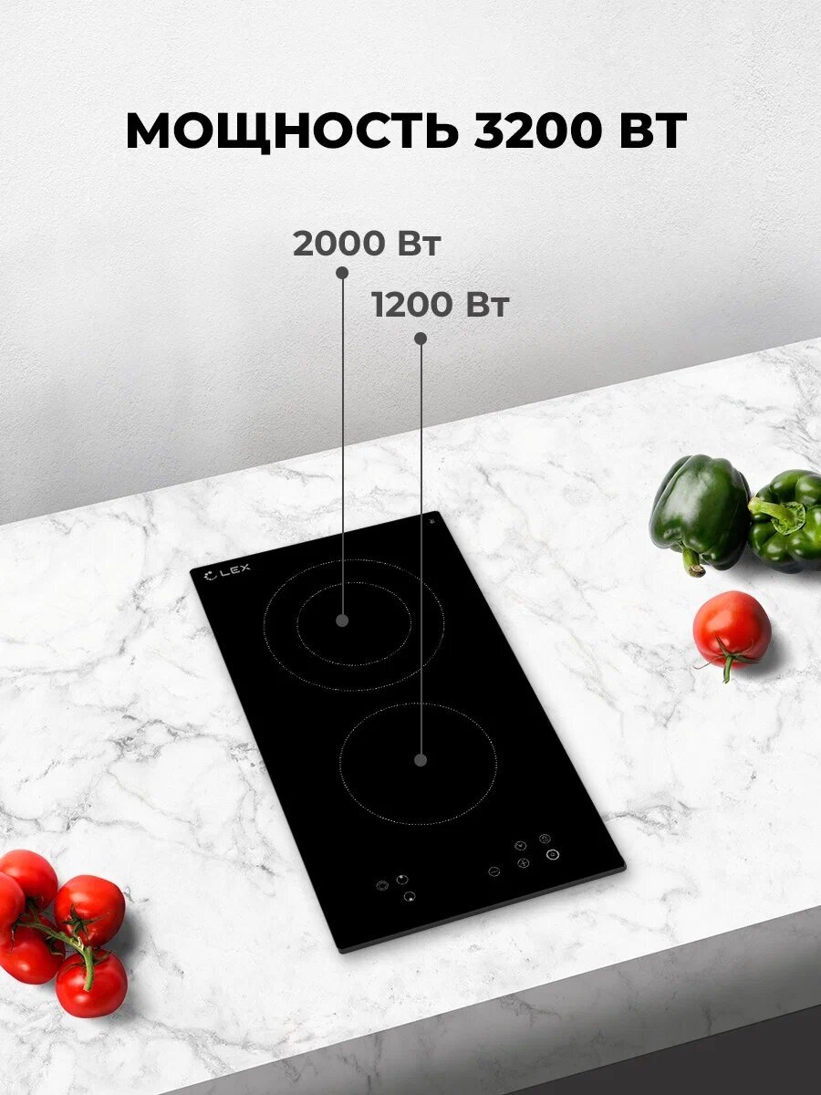 Компактная электрическая варочная панель LEX EVH 321A BL шириной встраивания 300 мм. Традиционный нагревательный элемент HiLight обеспечивает надежную работу и равномерность приготовления блюд. Модель обладает двухконтурной конфоркой для посуды с большим диаметром дна. Устройство снабжено функцией блокировки панели, индикаторами остаточного тепла, комбинированной системой защиты от перегрева и выкипания, программируемым таймером автоматического отключения. Модель имеет толщину корпуса 51 мм., что позволяет устанавливать варочную поверхность в тонкие, бюджетные столешницы.