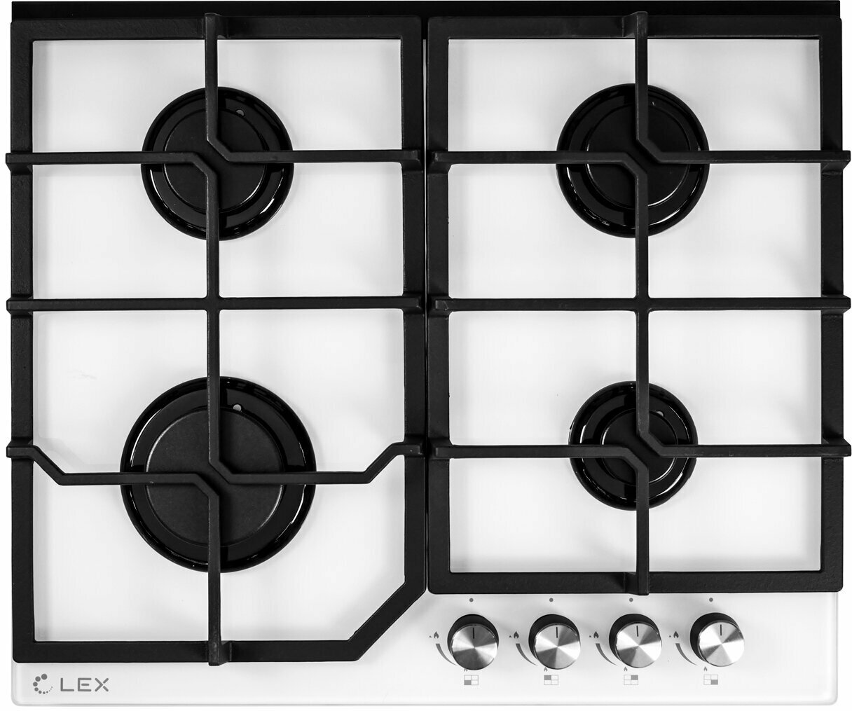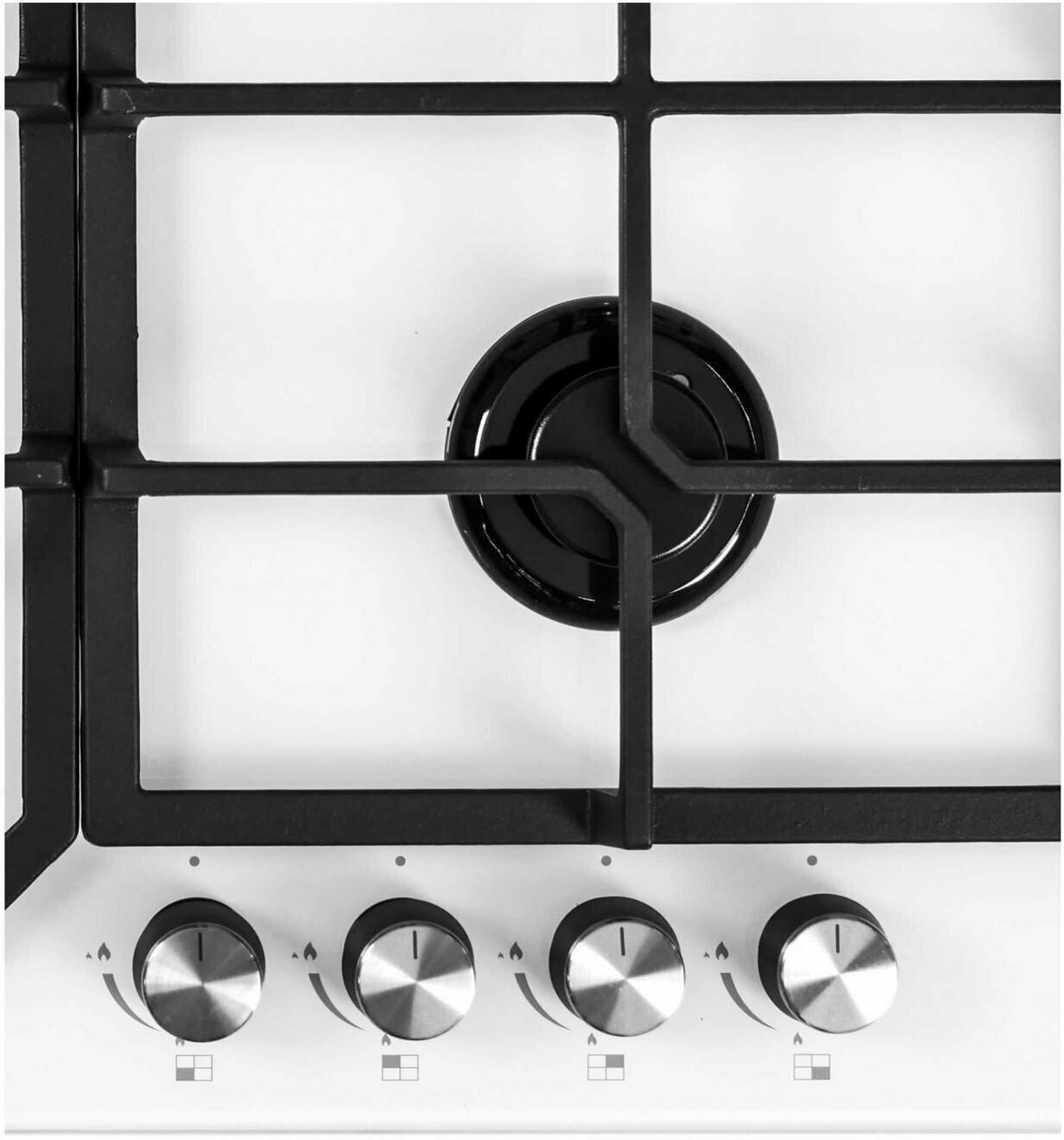 Варочная поверхность GVG 645 WH на 4 конфорки прекрасно встроится в современную кухню. У модели стильная белая основа из стекла и оригинальная форма решеток. Механические переключатели и система автоматического поджига конфорок позволяют удобно регулировать уровень нагрева. Технология контроля подачи газа предотвратит утечку. С конфорками мощностью от 1000 до 3500 Вт любые блюда приготовятся быстро и получат идеальную консистенцию благодаря равномерному прогреву.