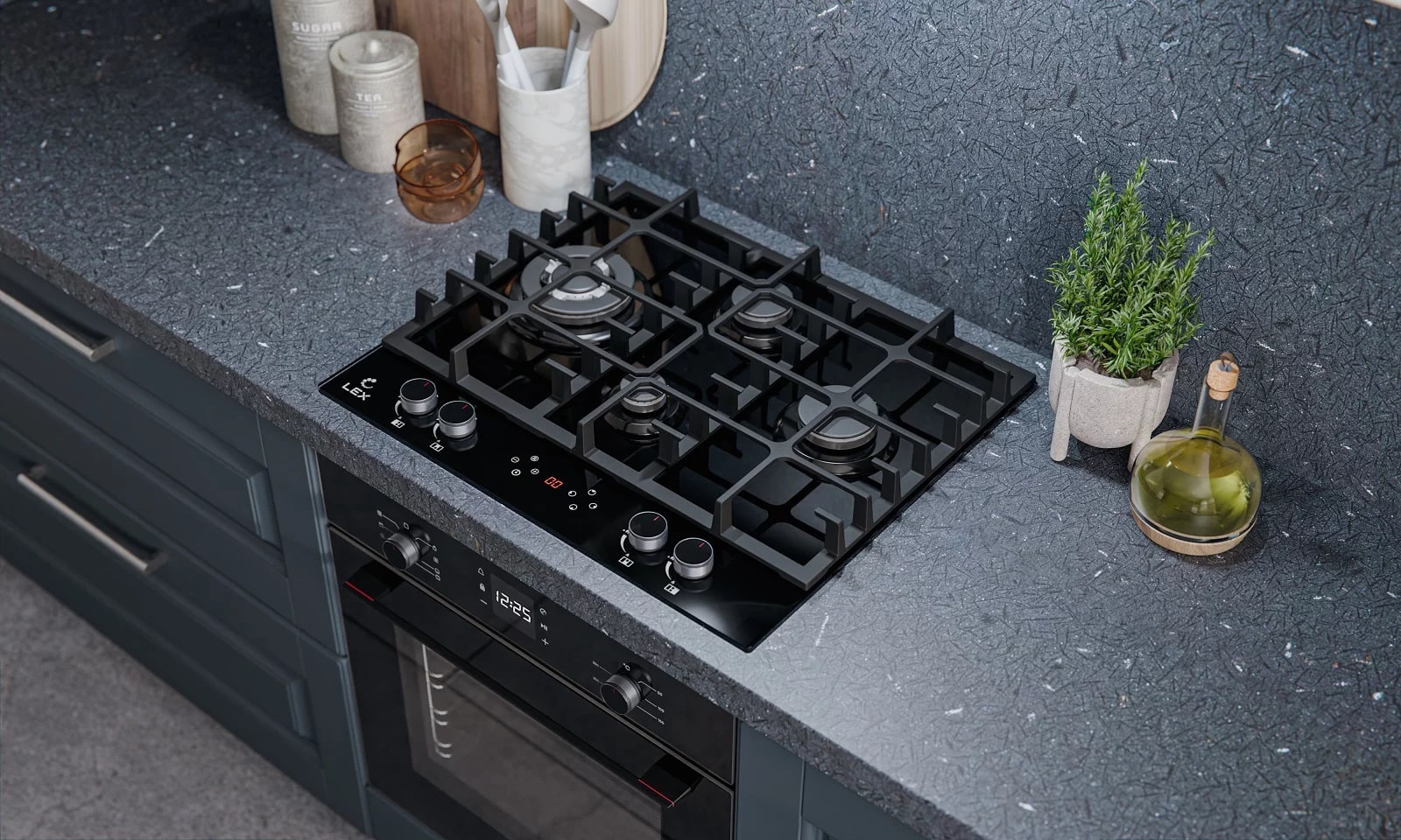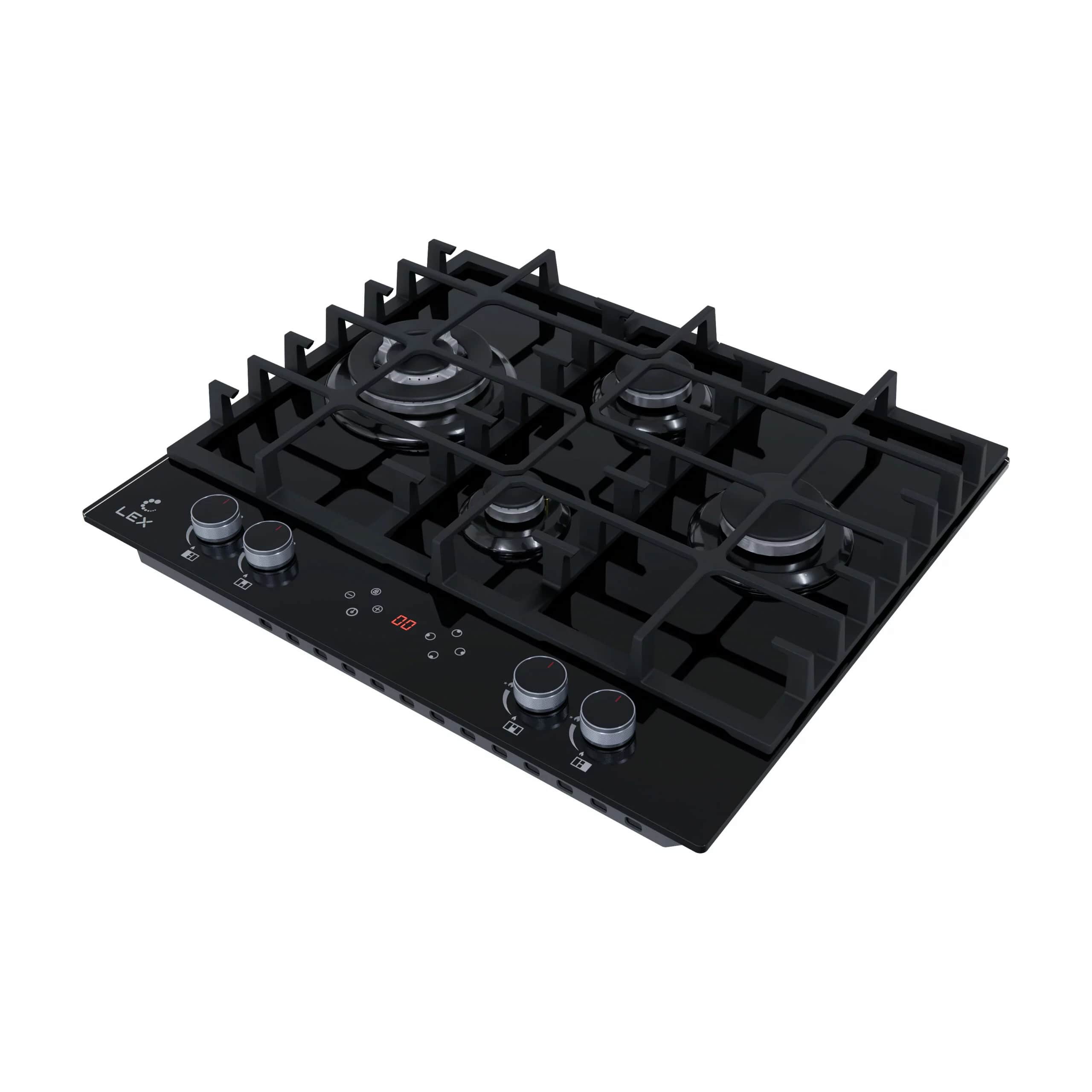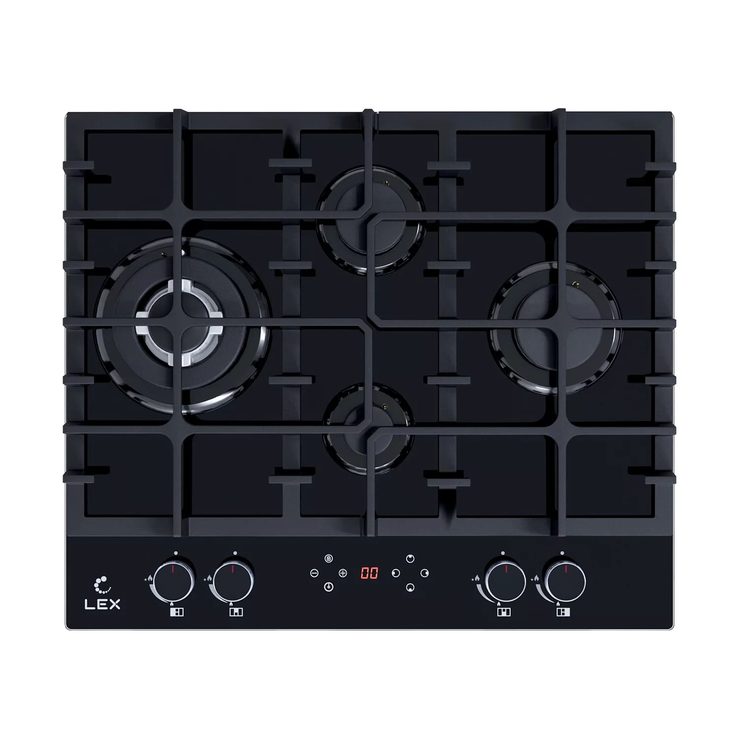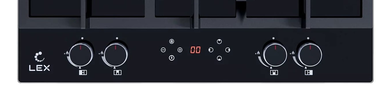 GVG 646T — первая газовая варочная поверхность с таймером в каталоге LEX. Таймер поможет улучшить результат приготовления, при этом сэкономив ваше время. Мощность конфорок настраивается привычными ручками, а для таймера предусмотрена отдельная сенсорная панель управления с дисплеем. Ее можно заблокировать, чтобы случайно не изменить параметры. Варочная поверхность имеет 3 одноконтурных конфорки с разными диаметрами и мощностью и двухконтурную Wok для приготовления полюбившихся многим азиатских блюд. Для вашего комфорта и безопасности конфорки оснащены электрической системой поджига и датчиками пламени с газ-контролем.