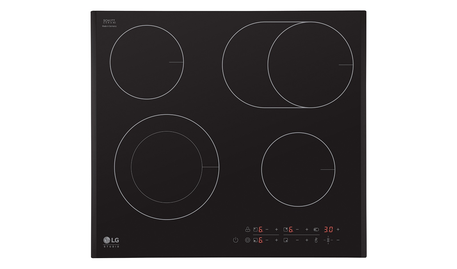 спереди слева 150 мм - 1000 Вт / 220 мм - 2200 Вт (двойная зона) сзади слева 150 мм - 1200 Вт