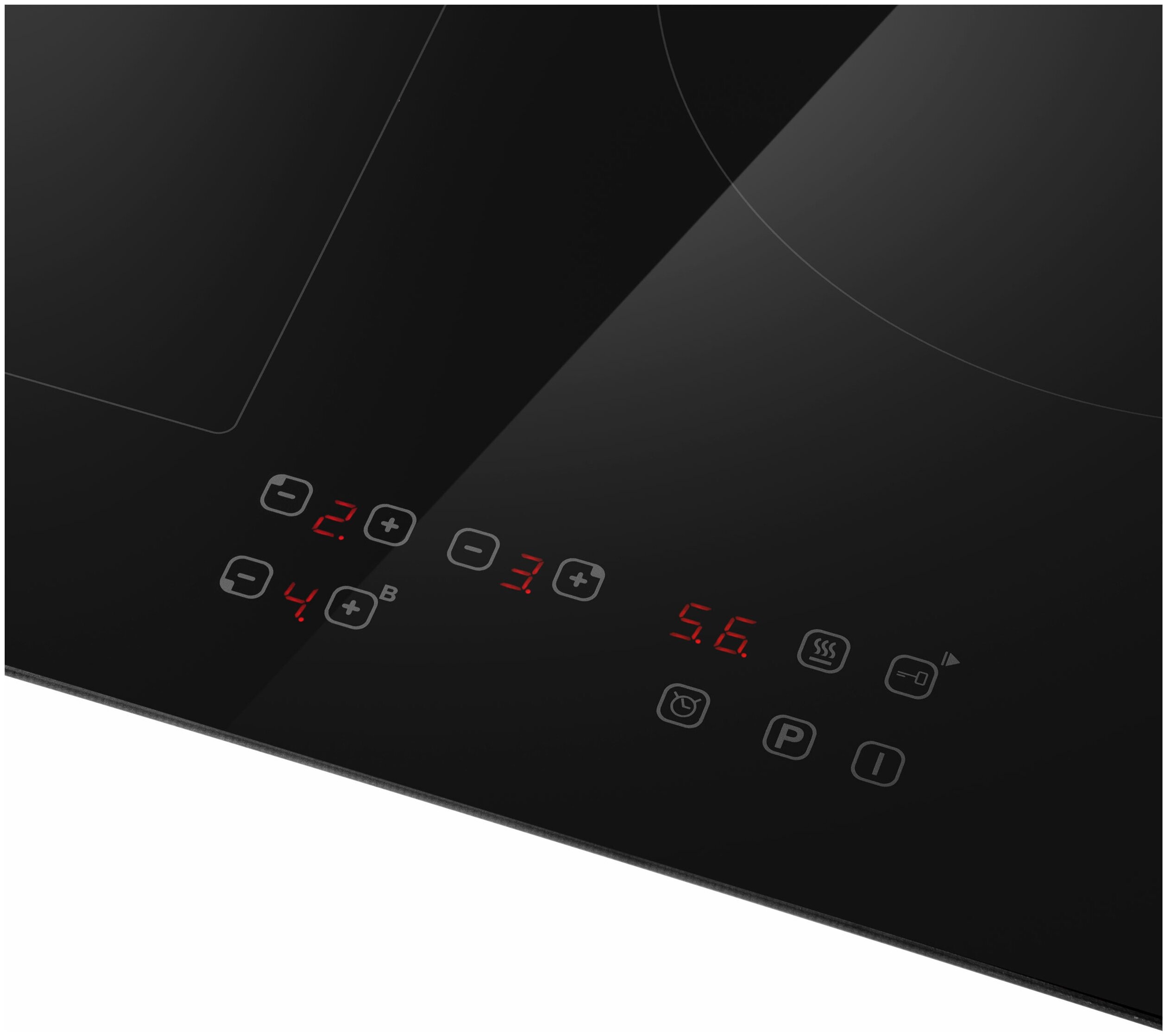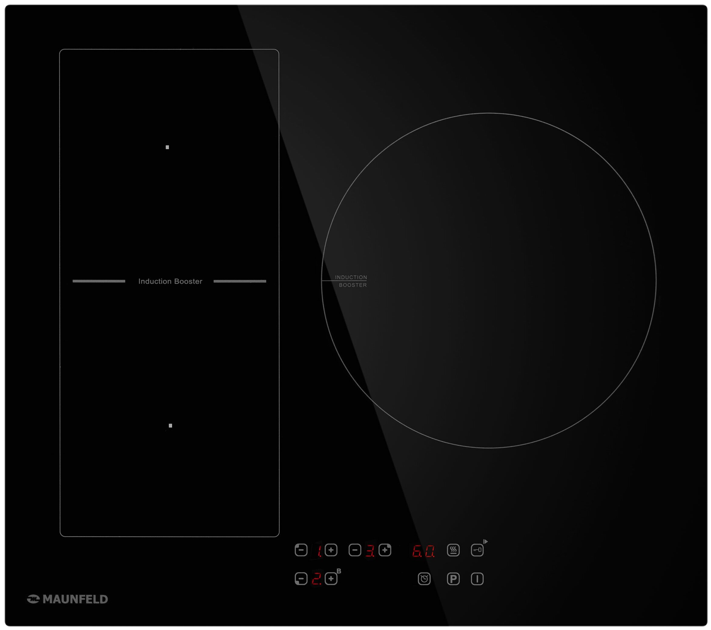 защитное отключение конфорок, кнопка блокировки панели, индикатор остаточного тепла