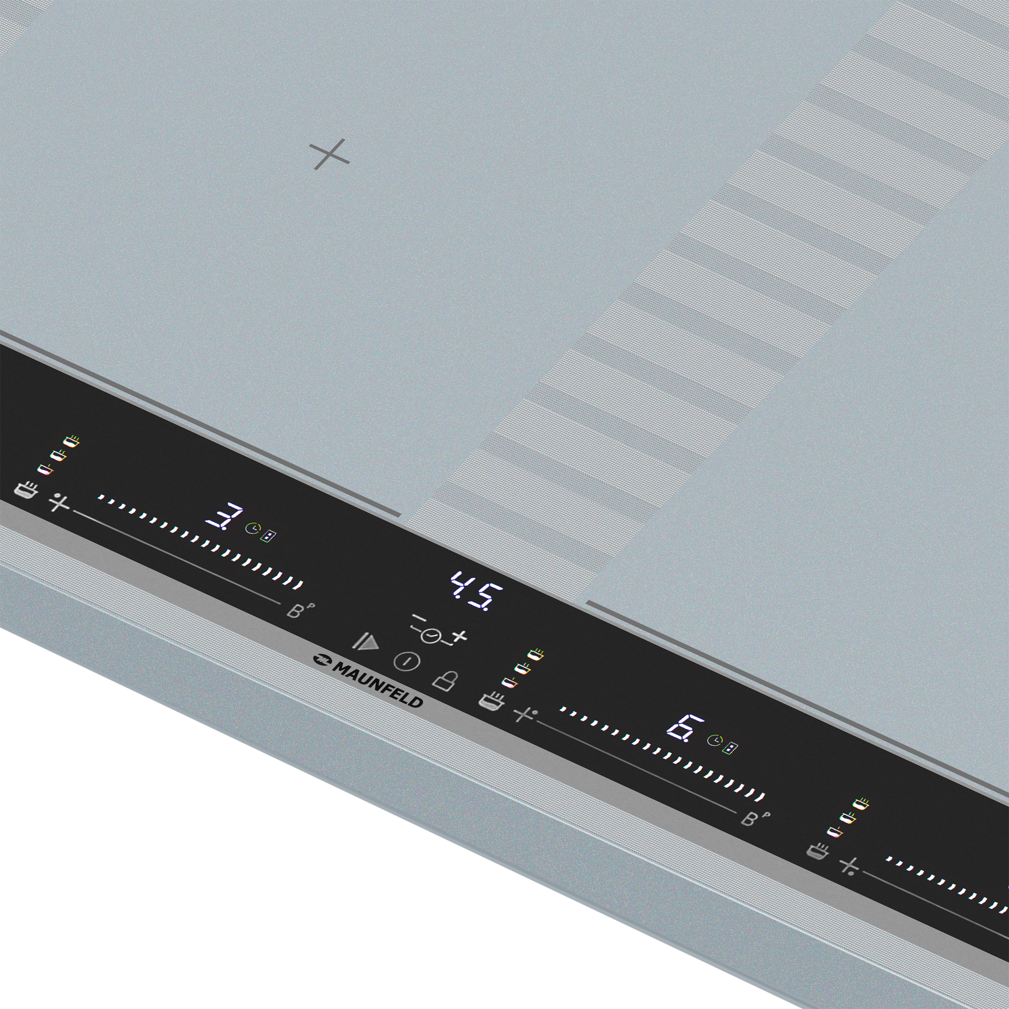 защитное отключение конфорок, индикатор остаточного тепла, кнопка блокировки панели