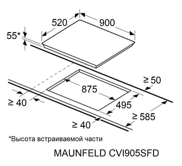 Мощность конфорок, Вт 2х1500Вт (бустер 2000Вт), 2х2000Вт (бустер 2800Вт), 1x2300Вт (бустер 3000Вт)