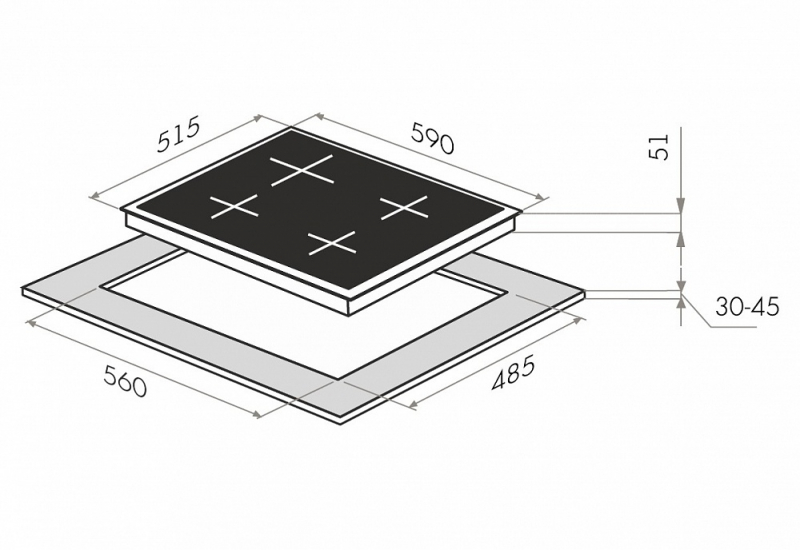 Размеры для встраивания (ШхГ): 560 х 485 мм