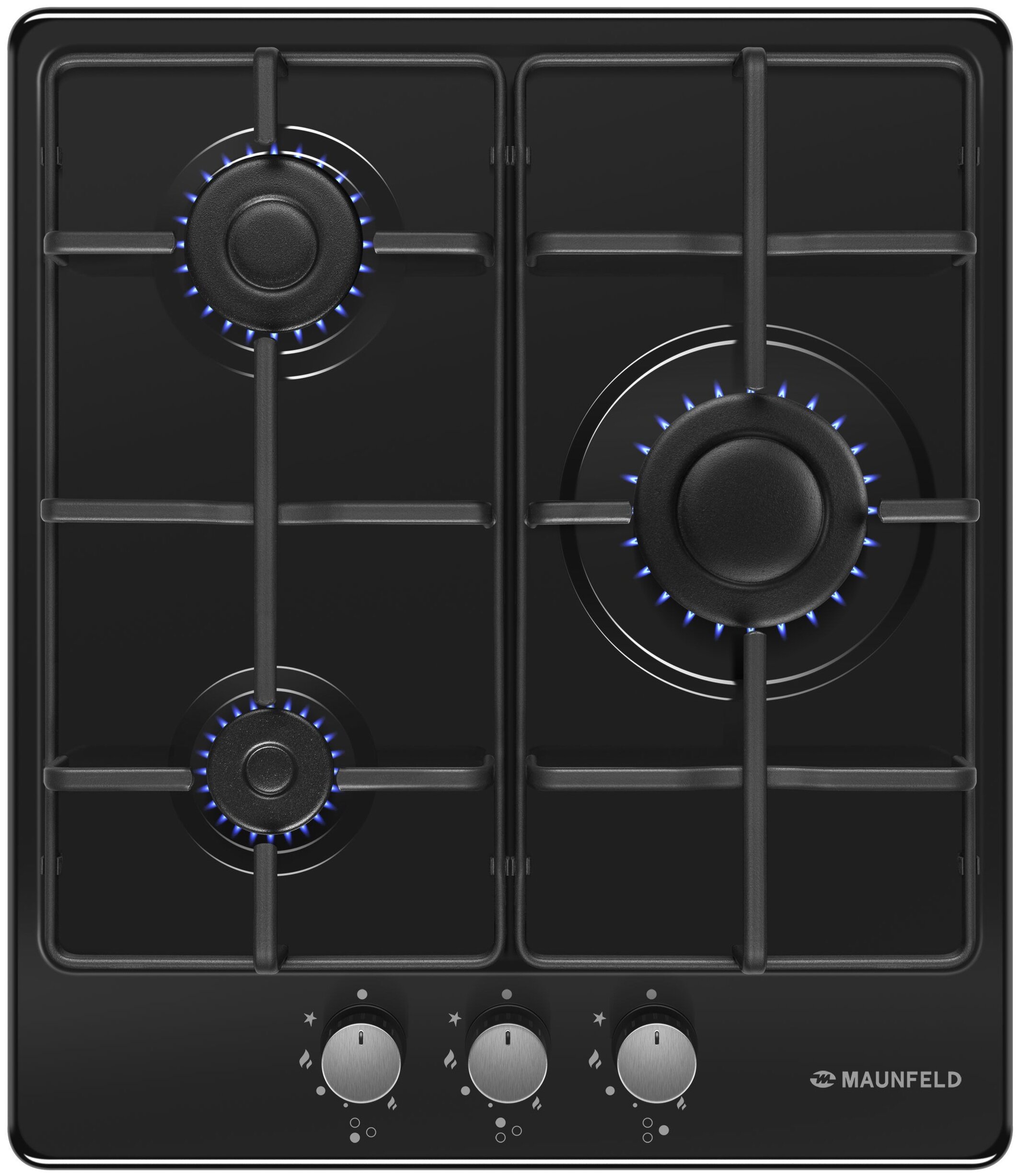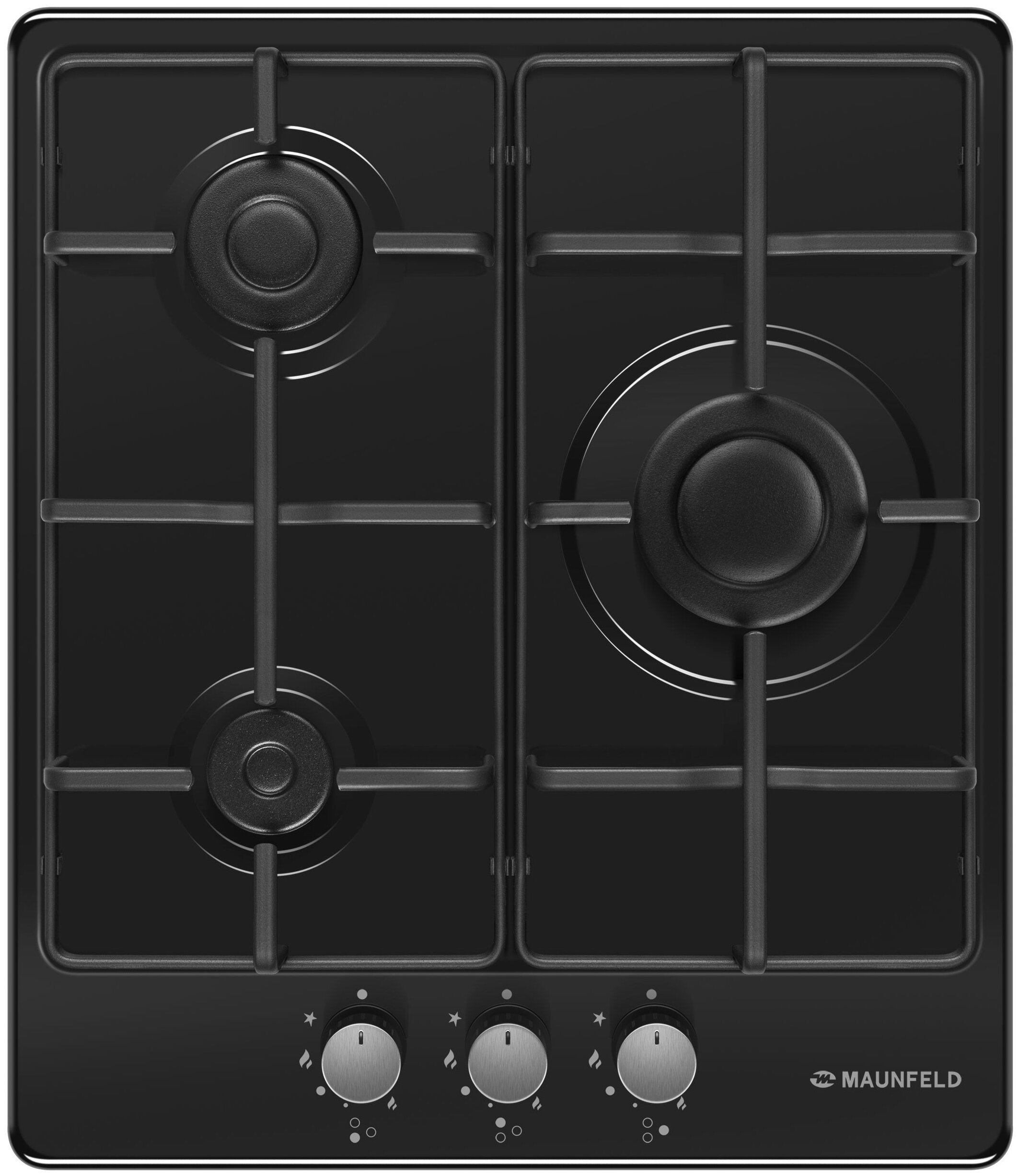 3 конфорки мощностью: 2600, 1700, 1000 Вт