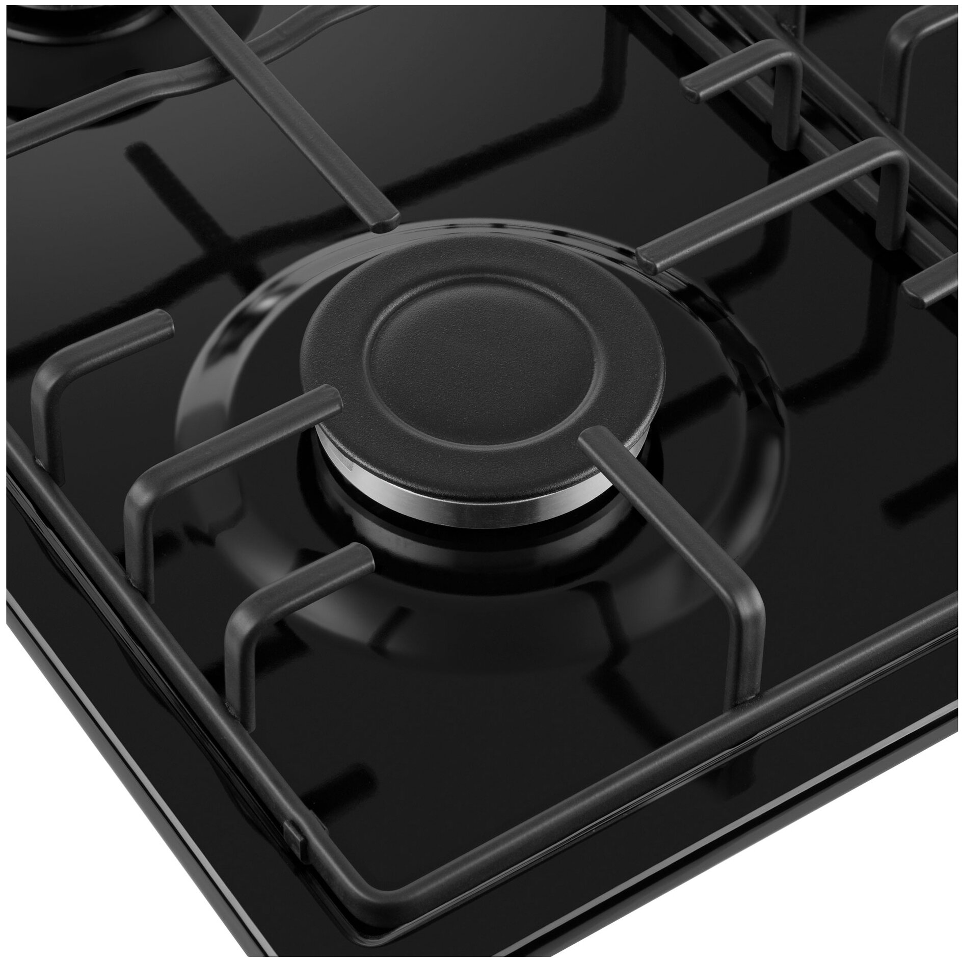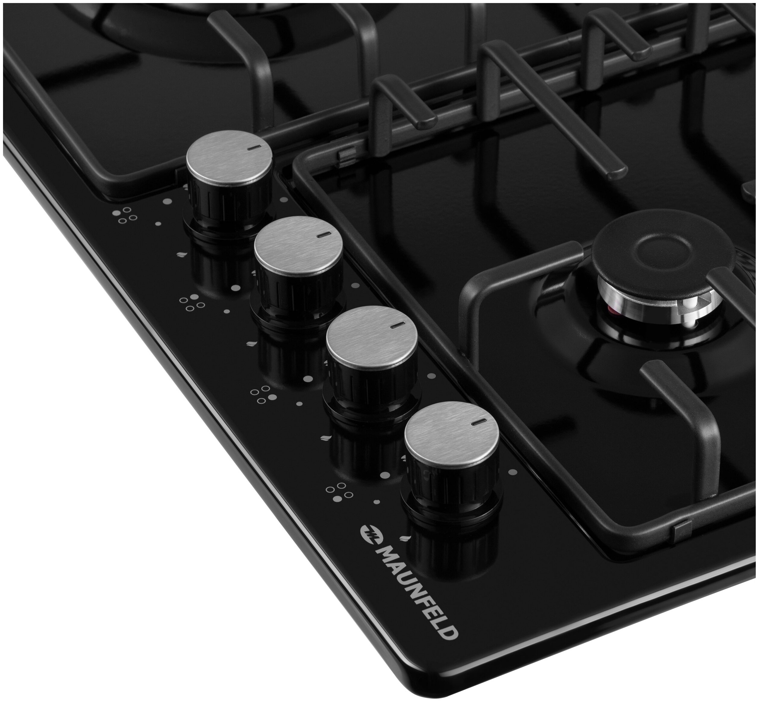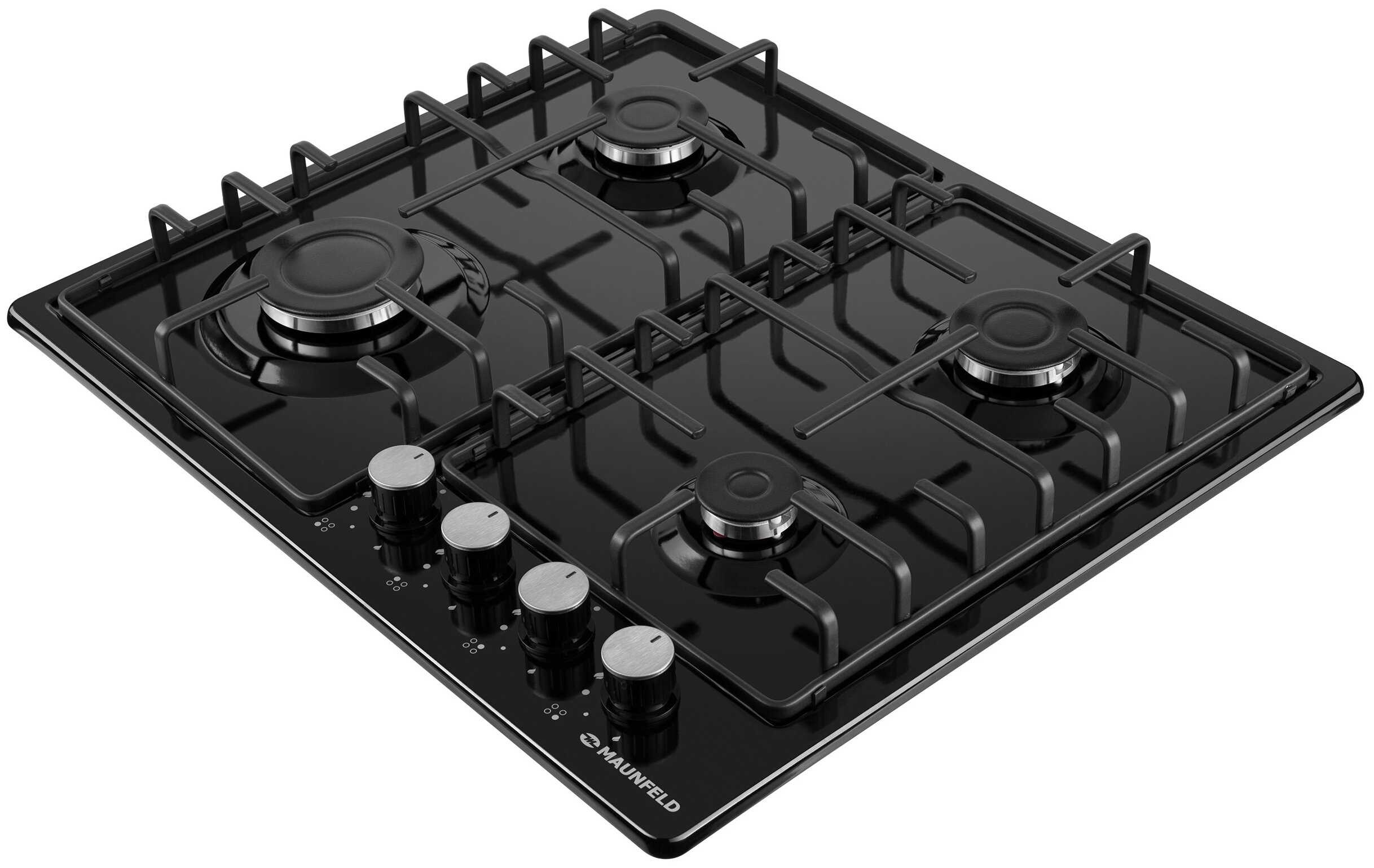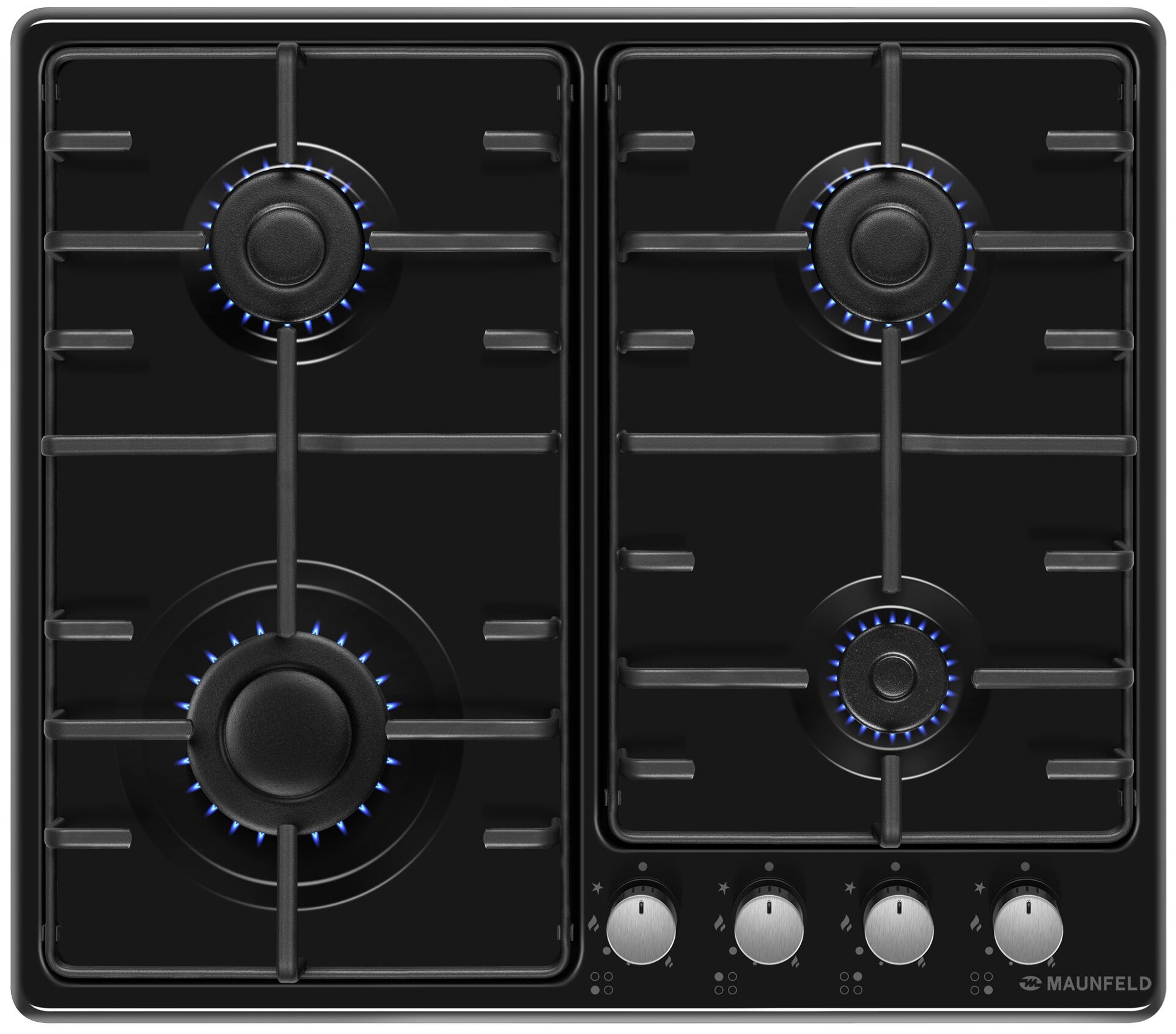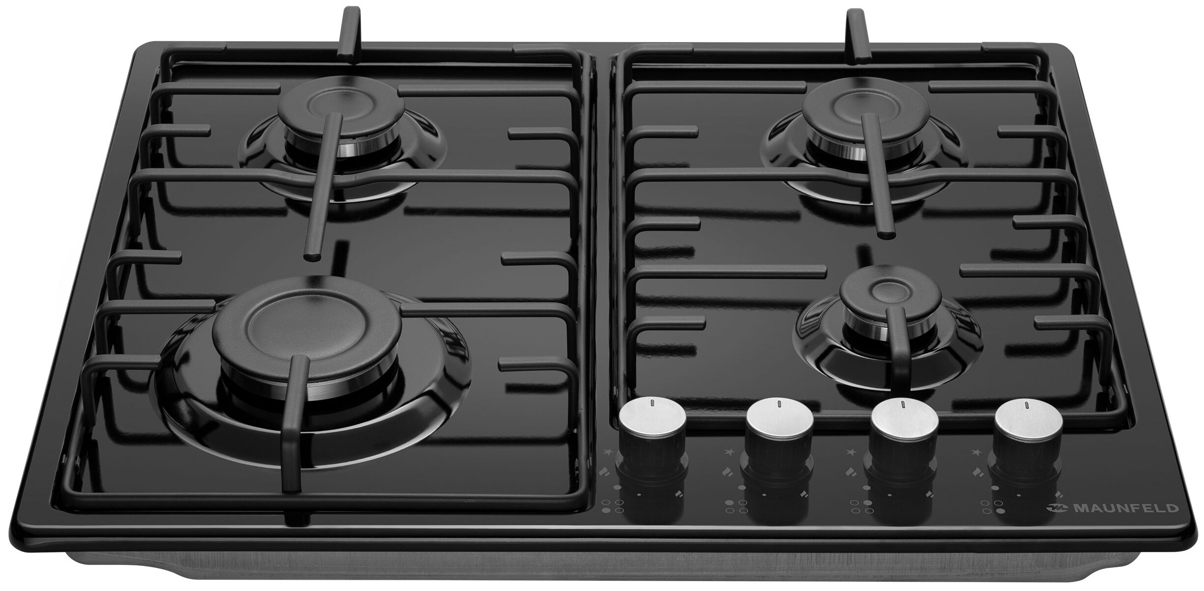 4 конфорки мощностью: 2600, 1700, 1700, 1000 Вт; подходит для сжиженного (балонного) газа