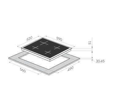Глубина варочной поверхности, см: 52