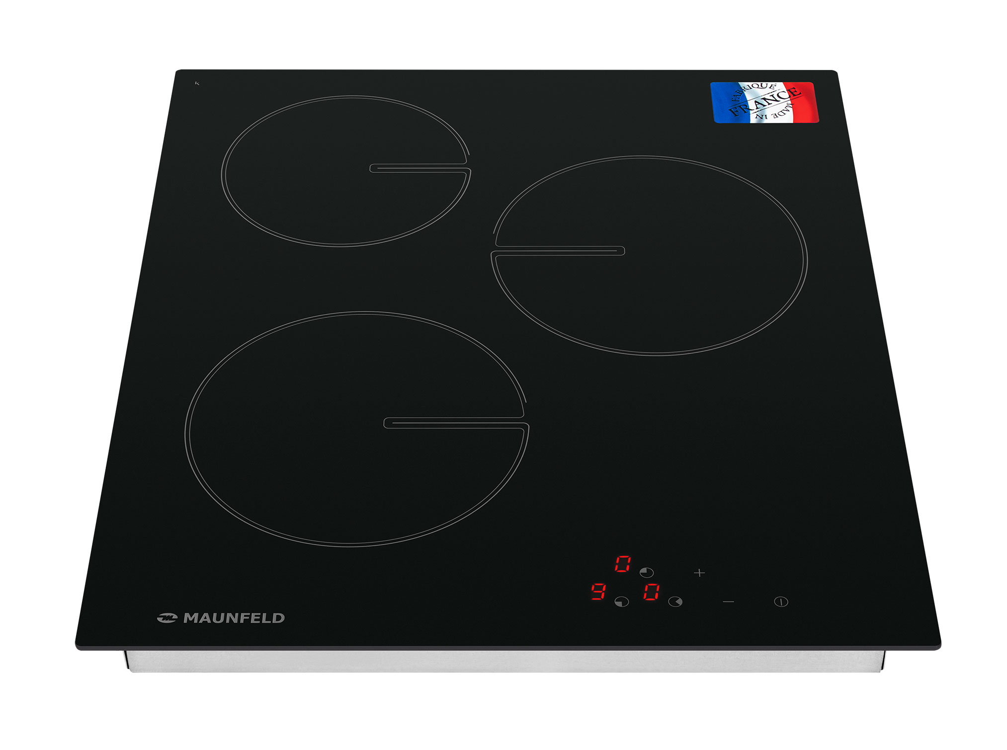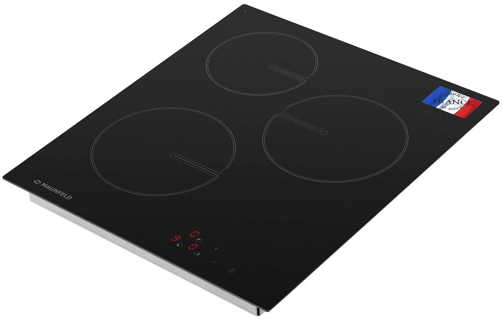 1 конфорка мощностью 1200 вт (d=155 мм) и 2 конфорки мощностью по 1800 вт (d=190 мм), таймер до 99 минут