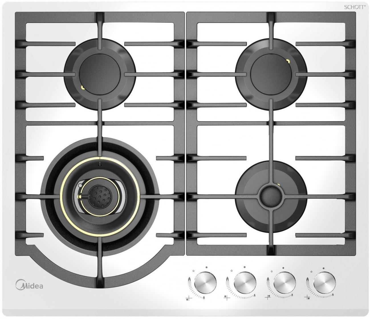Устройство | варочная поверхность | Тип поверхности | газовая |  |  | Конфорки | Рабочая поверхность | закаленное стекло | Кол-во газовых конфорок | 4 | Из них WOK-конфорок (турбо) | 1 / Volcano / | Управление | поворотные переключатели |