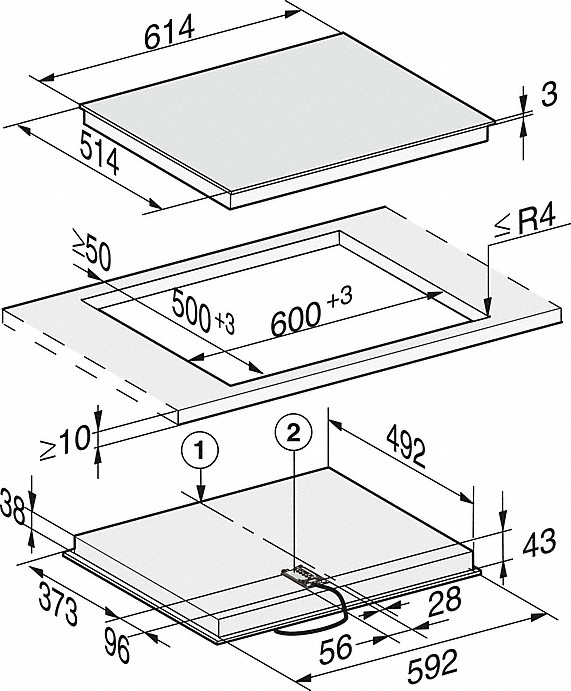 Конфорки с зонами расширения 1 трехконтурная, 1 овальная