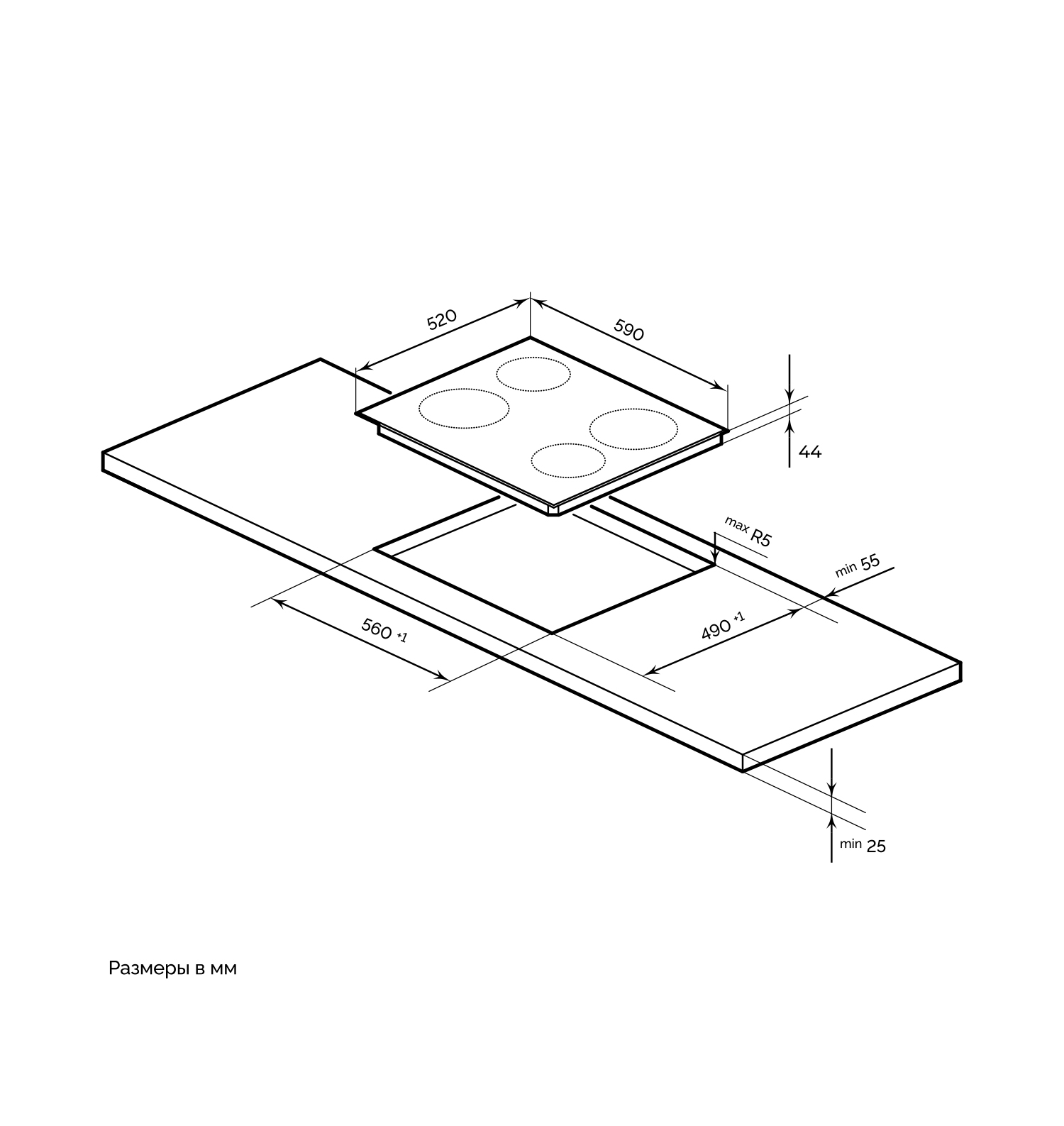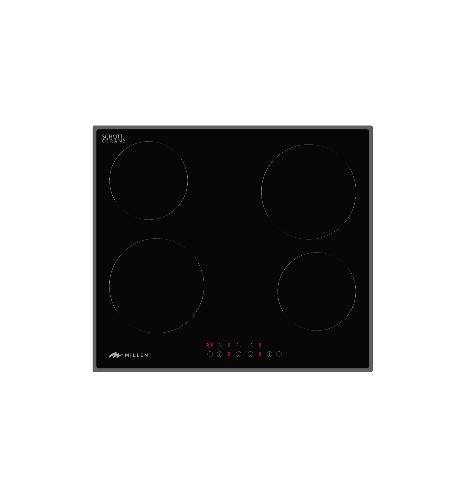 Одноконтурная конфорка 1200 Вт (Ø 165 мм)*2,, 1800 Вт (Ø 200 мм)*2