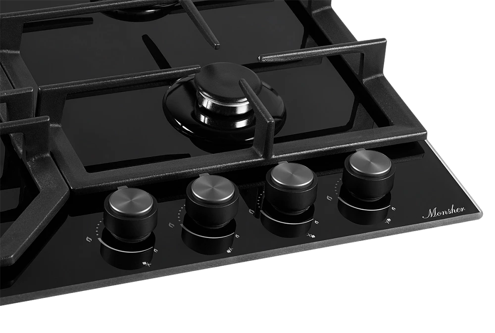 - Удобное расположение WoK-конфорки повышенной мощности на переднем плане облегчит приготовление блюд большого объема и веса, поскольку при таком расположении горелки не нужно тянуться на другой конец варочной поверхности.