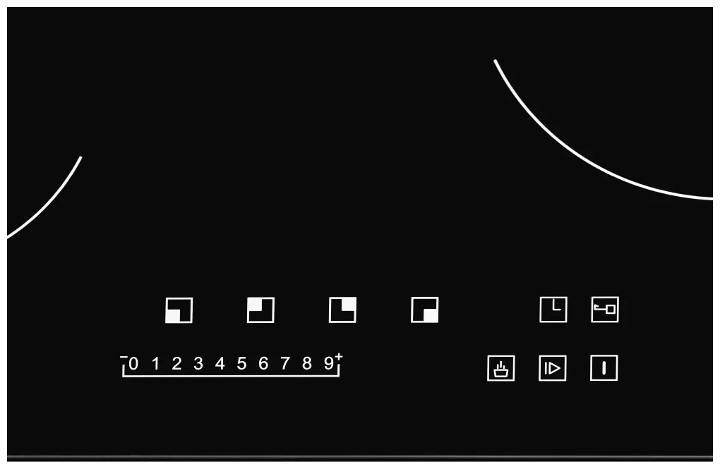 защитное отключение конфорок, индикатор остаточного тепла, кнопка блокировки панели