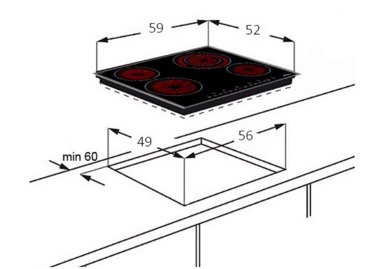 Размеры для встраивания (ШхГ) 560x490 мм