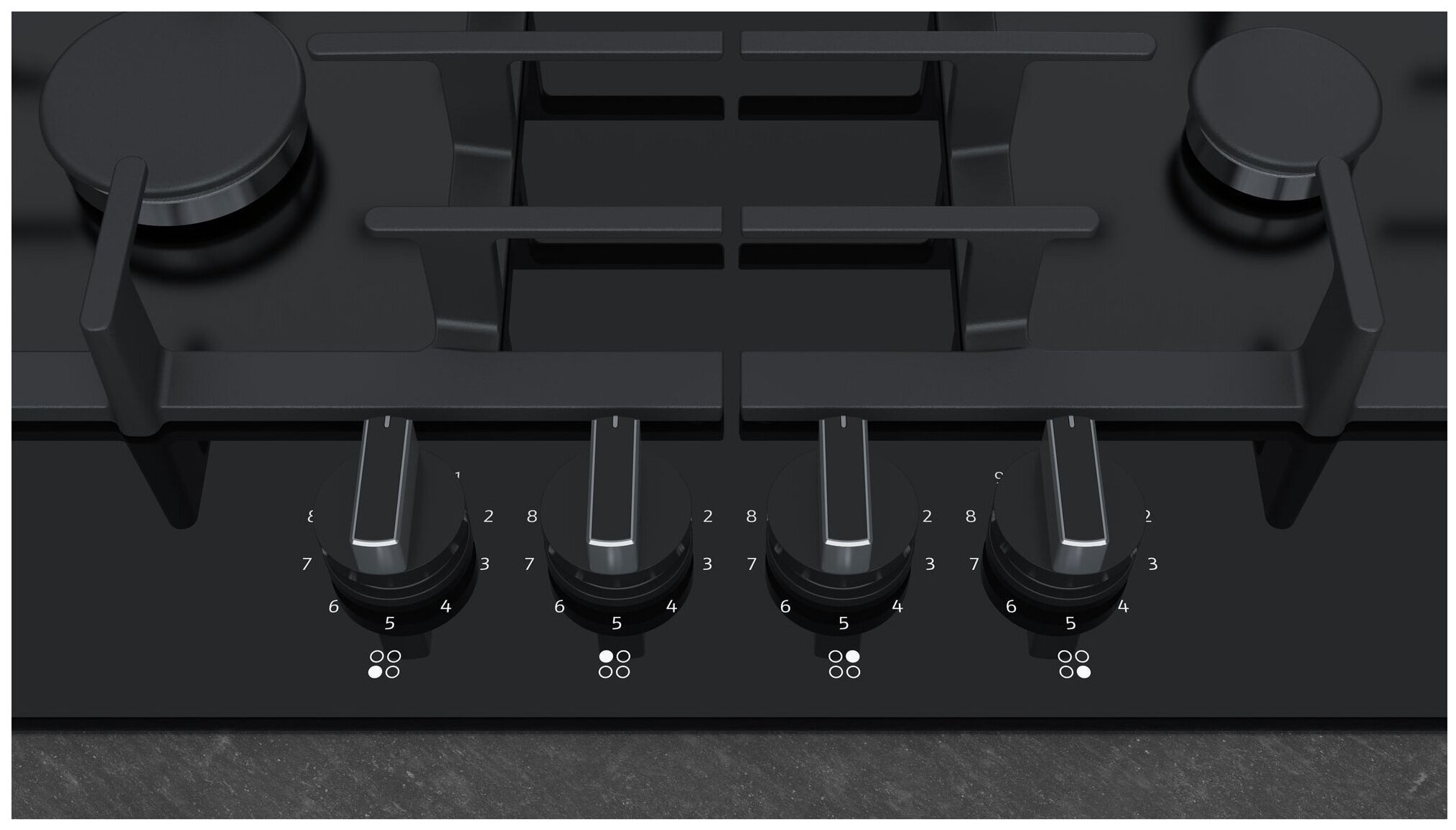 индивидуальные чугунные решетки для всех конфорок; газ-контроль обеспечивает термоэлектрическую защиту от утечки газа; форсунки для балонного газа в комплекте; вес: 15.1 кг