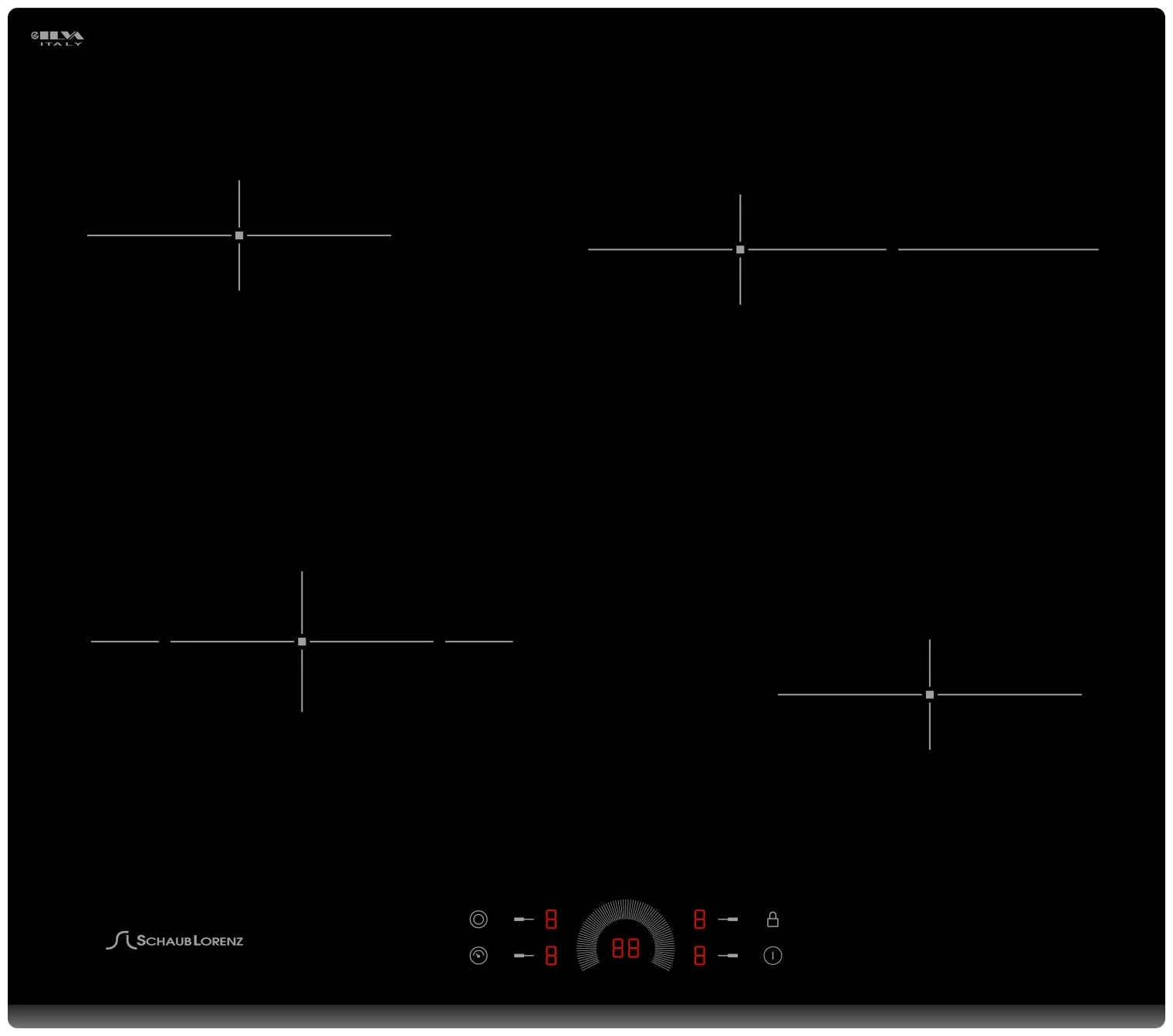 защитное отключение конфорок, индикатор остаточного тепла, кнопка блокировки панели