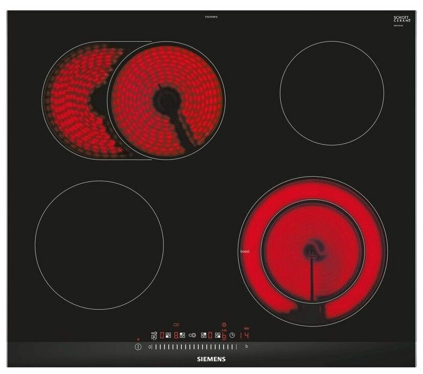 защитное отключение конфорок, кнопка блокировки панели, индикатор остаточного тепла