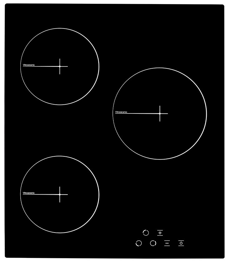 защитное отключение конфорок, индикатор остаточного тепла, кнопка блокировки панели