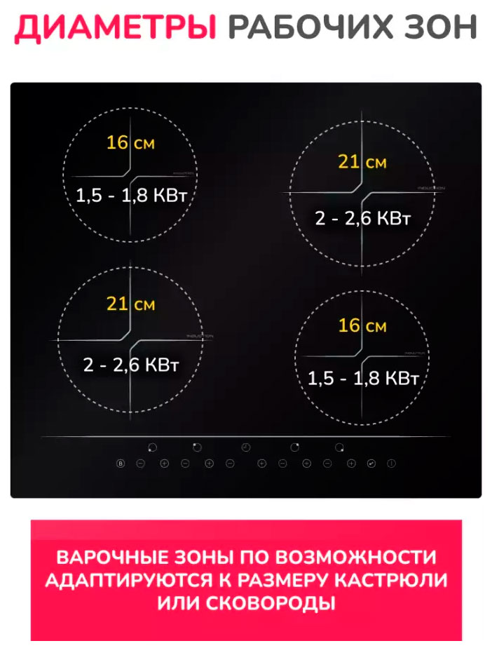 Количество конфорок: 4 индукционные