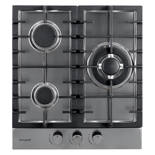 независимая; общая мощность конфорок 6200Вт; количество конфорок 3; поверхность нержавеющая сталь; решетка чугун; автоматический электроподжиг; ширина 450мм; цвет нержавеющая сталь